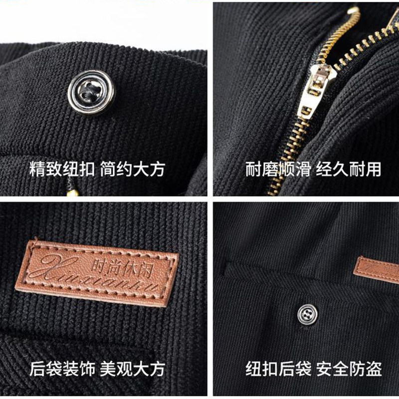 灯芯绒裤子男秋冬加厚加绒宽松免烫大码中年男士爸爸装直筒休闲裤