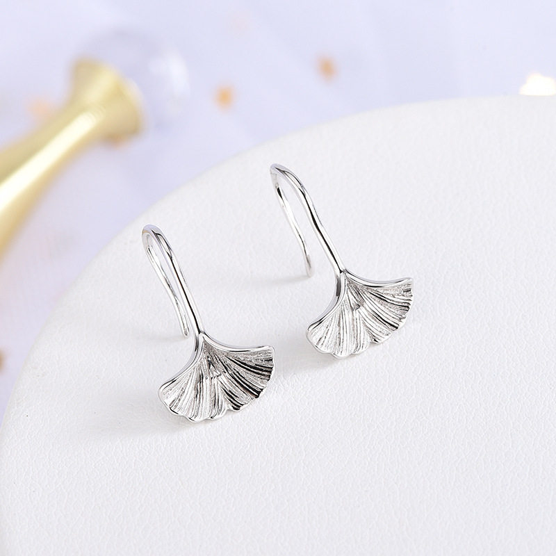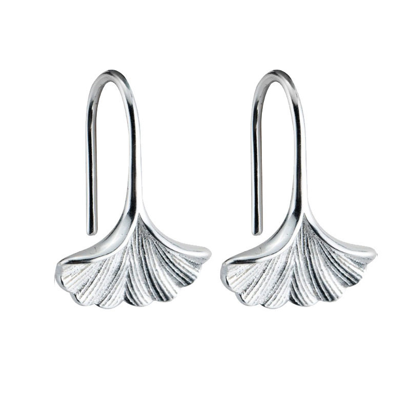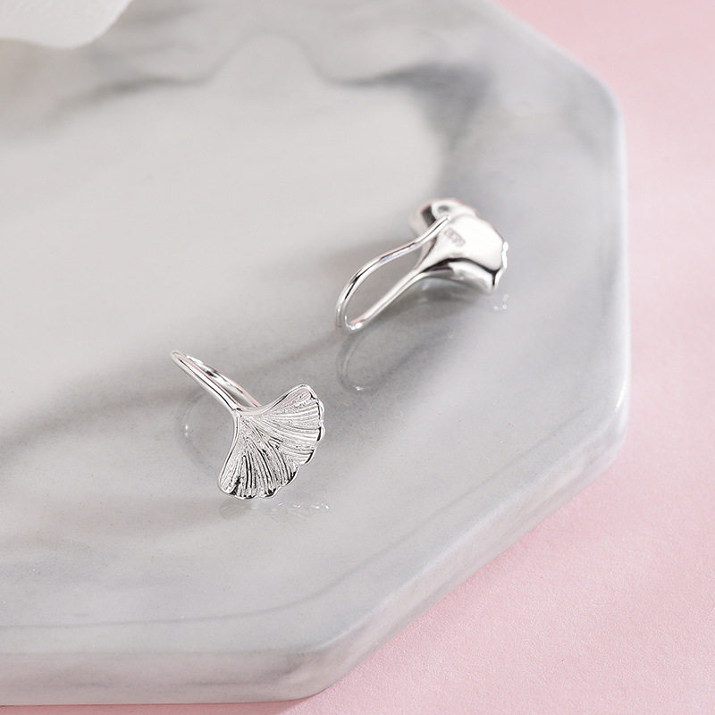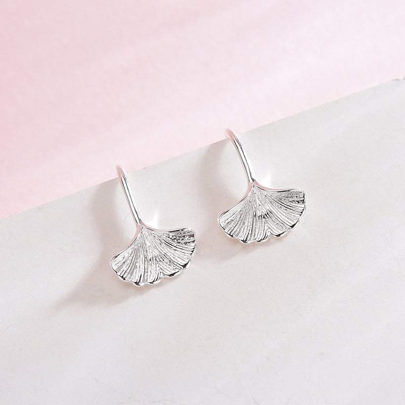 批发S925银耳环女韩版森系素银小清新可爱树叶银杏耳钉一件代发