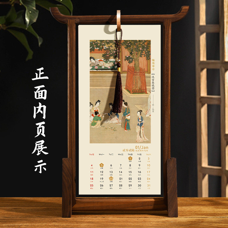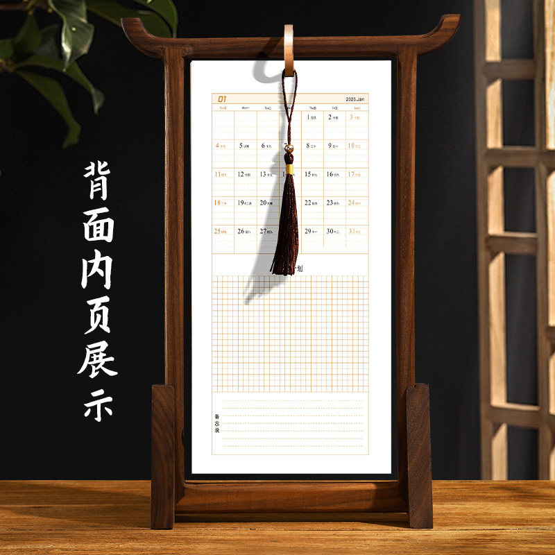 实木台历定制中国风流苏木质创意桌面摆件商务订制公司企业礼品伴手礼品礼盒套装专版印刷月历2026年日历新款