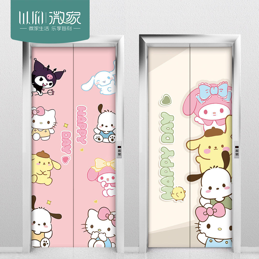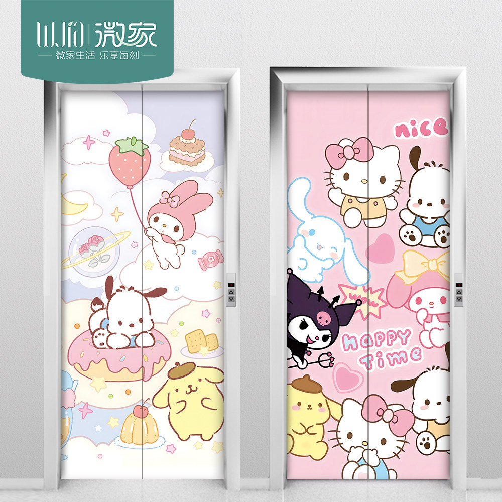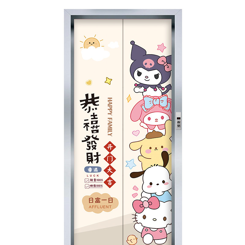 三丽鸥电梯门贴纸自粘防水遮丑一梯一户电井防火门入户门创意装饰