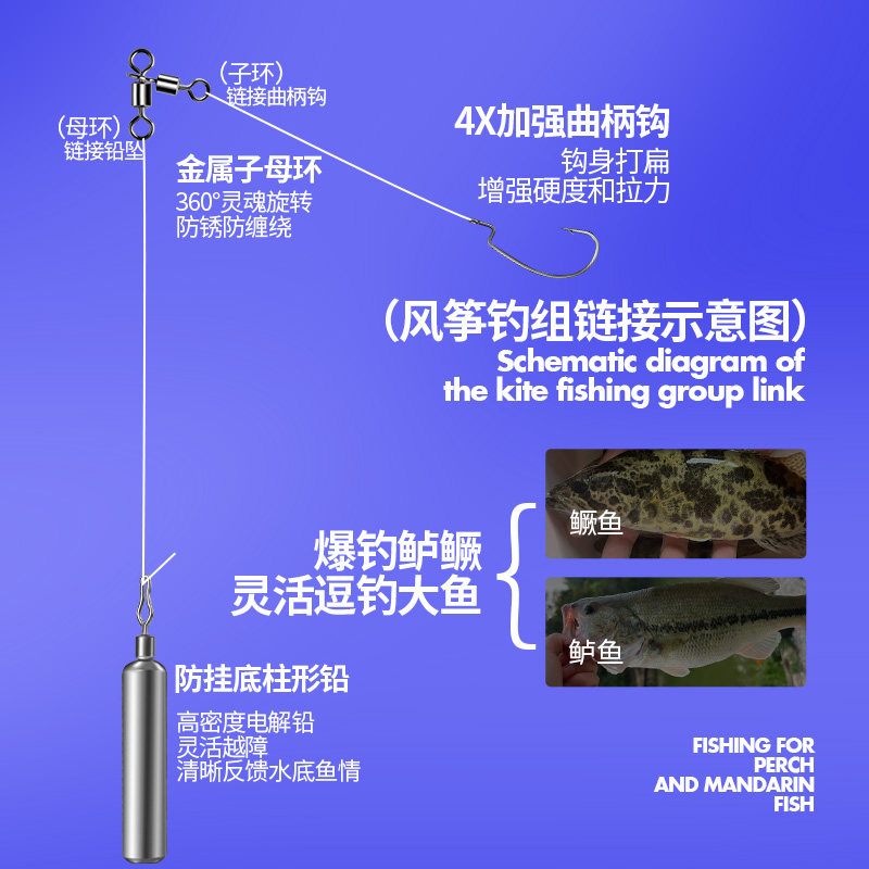 路亚风筝钓组成品假饵套装配件泥鳅倒钓沟翘嘴流氓线组浮钓防缠绕