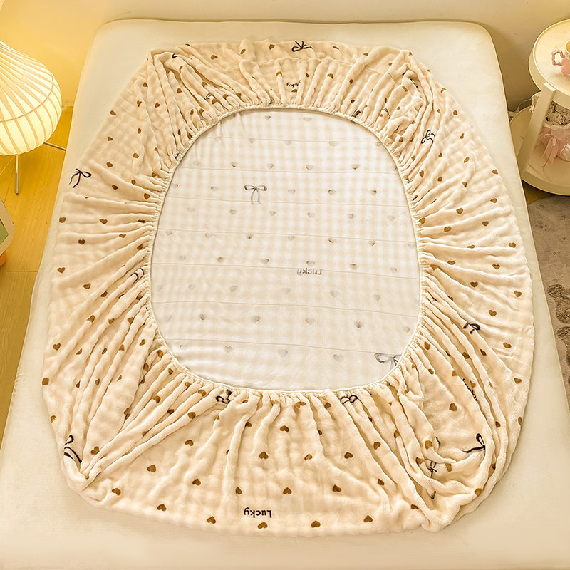 加厚牛奶绒床笠单件泡泡绒冬季保暖枕套三件床垫席梦思保护套防滑