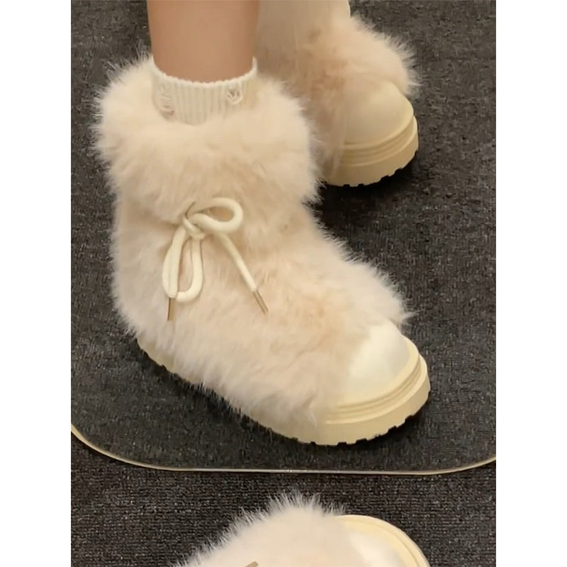 低帮厚底雪地靴女2025新款冬季懒人一脚蹬毛毛棉鞋加绒加厚女鞋子