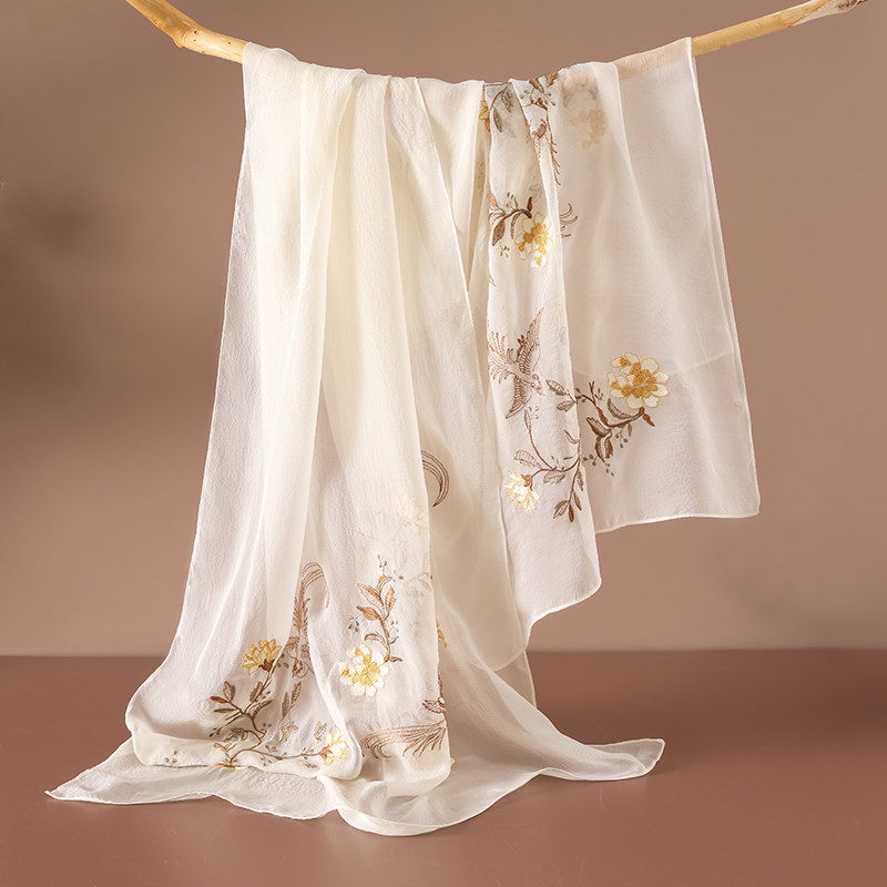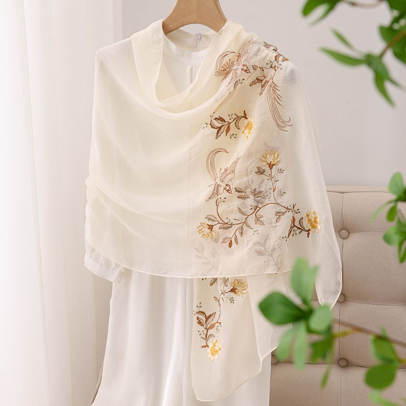 真丝丝巾围巾送妈妈婆婆生日礼物苏绣旗袍披肩桑蚕丝礼盒送长辈