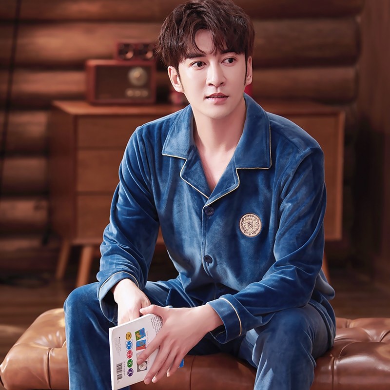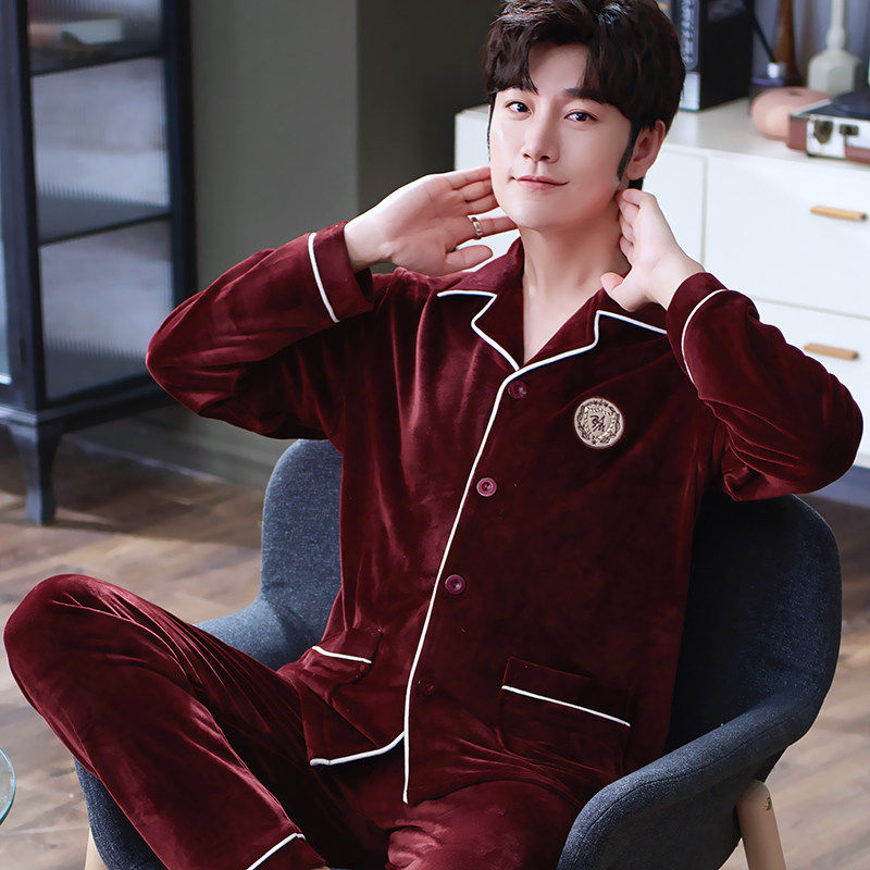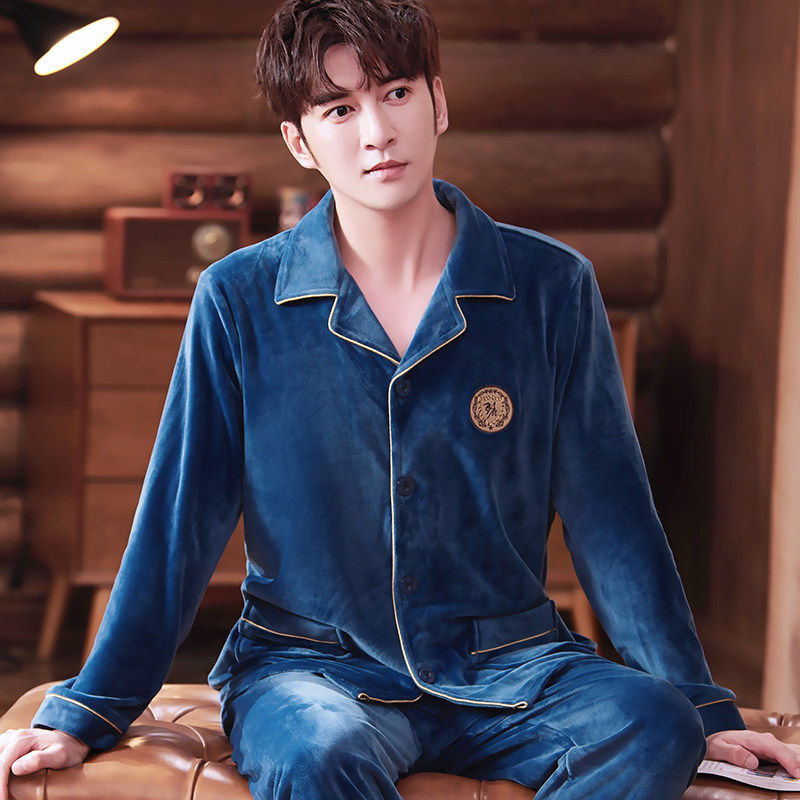 新款珊瑚绒睡衣男士秋冬款加厚套装加绒法兰绒男款冬季家居服大码