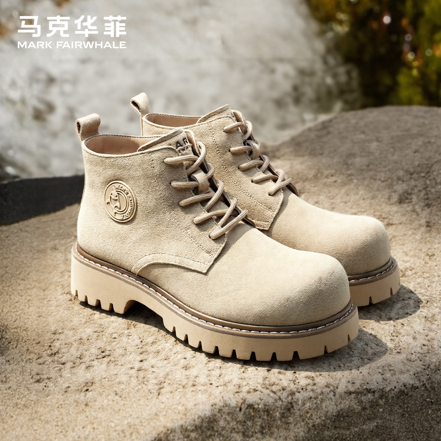 马克华菲马丁靴男2025新款冬季大头鞋男鞋户外增高工装靴男士皮靴