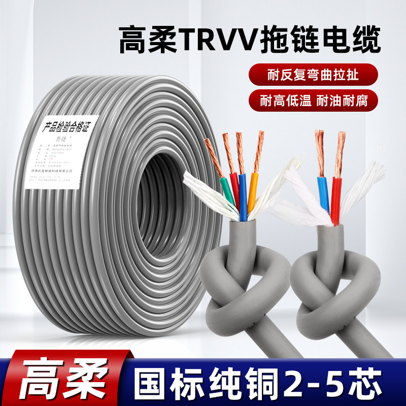 国标纯铜TRVV高柔性拖链电缆线2 3 4 5芯0.3 0.5平方0.75耐油抗拉