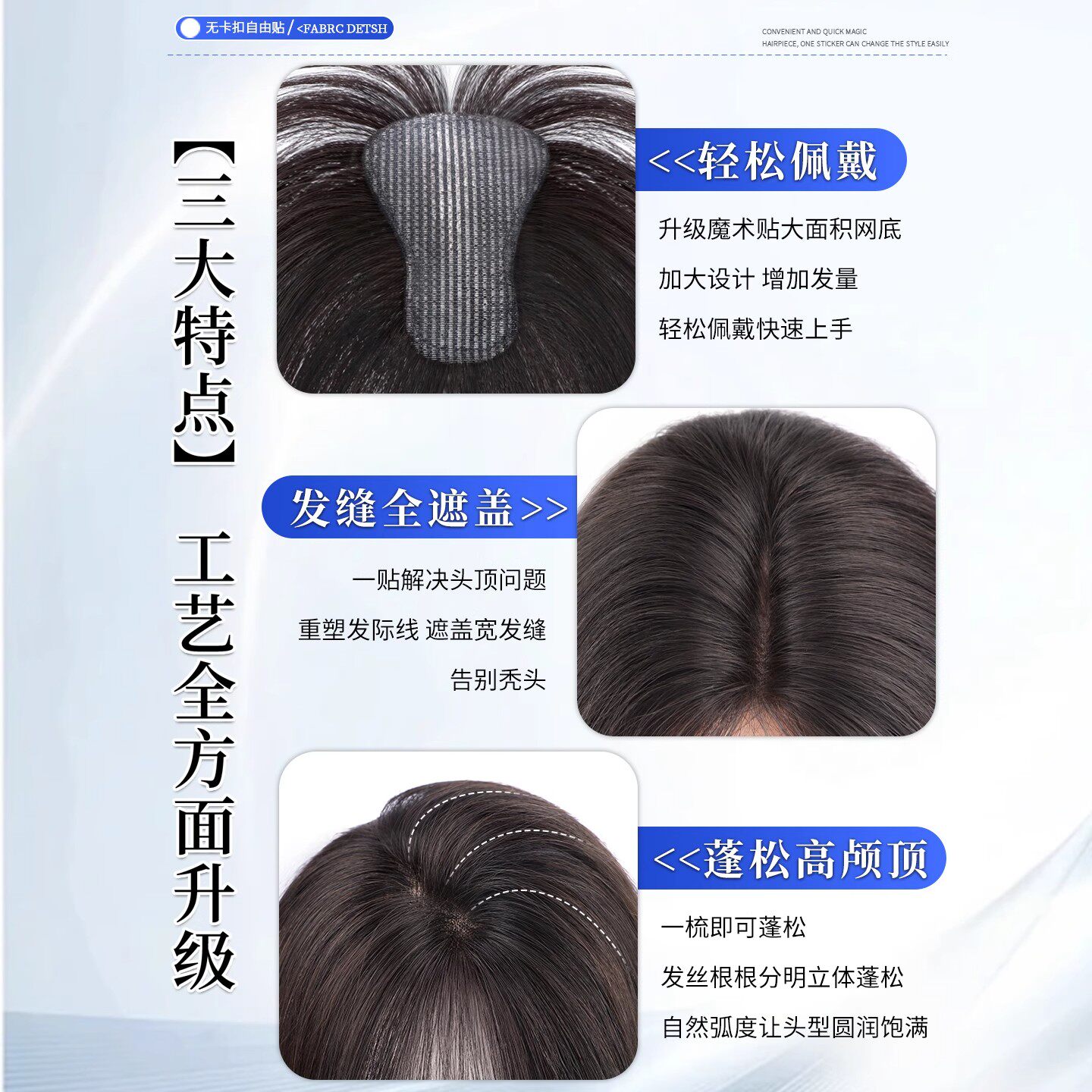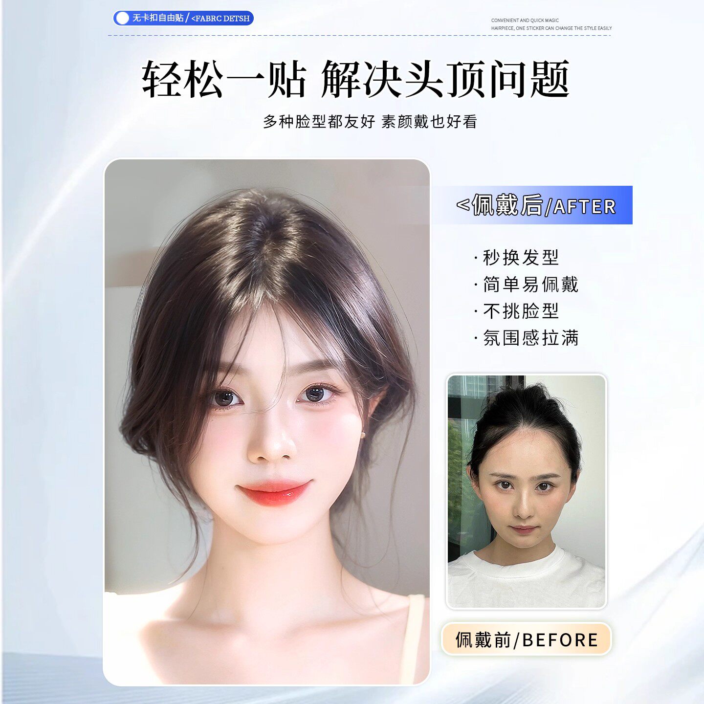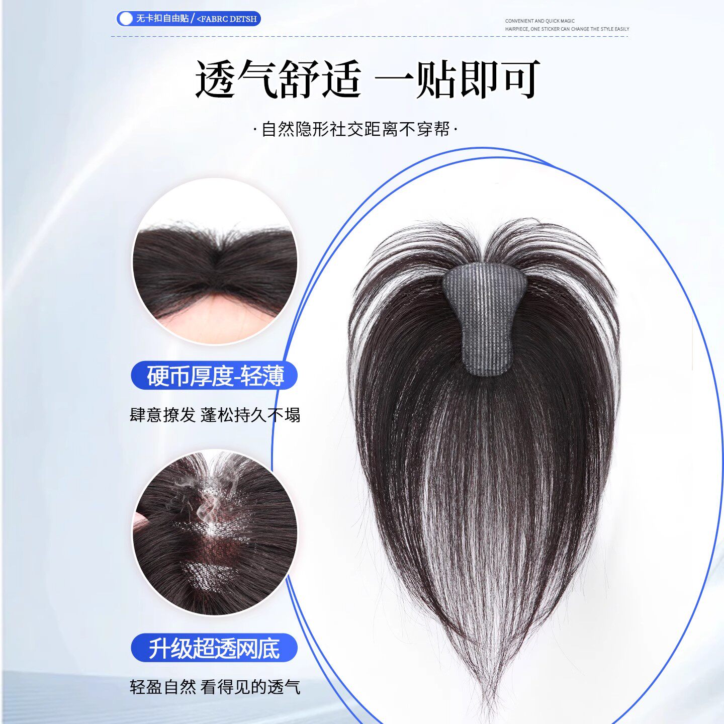 魔术贴刘海假发女片头顶缝遮白发高颅顶自然前额无痕真发遮盖蓬松
