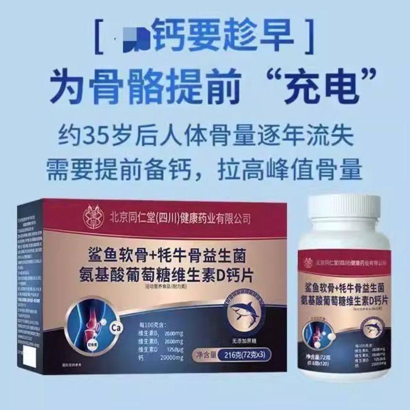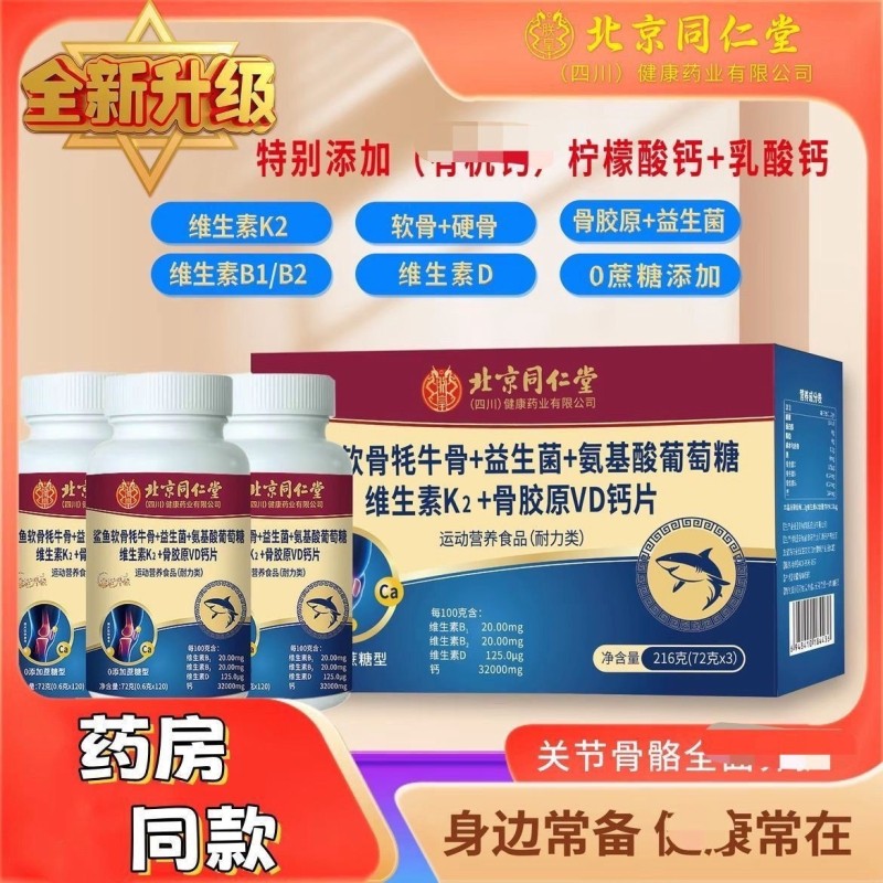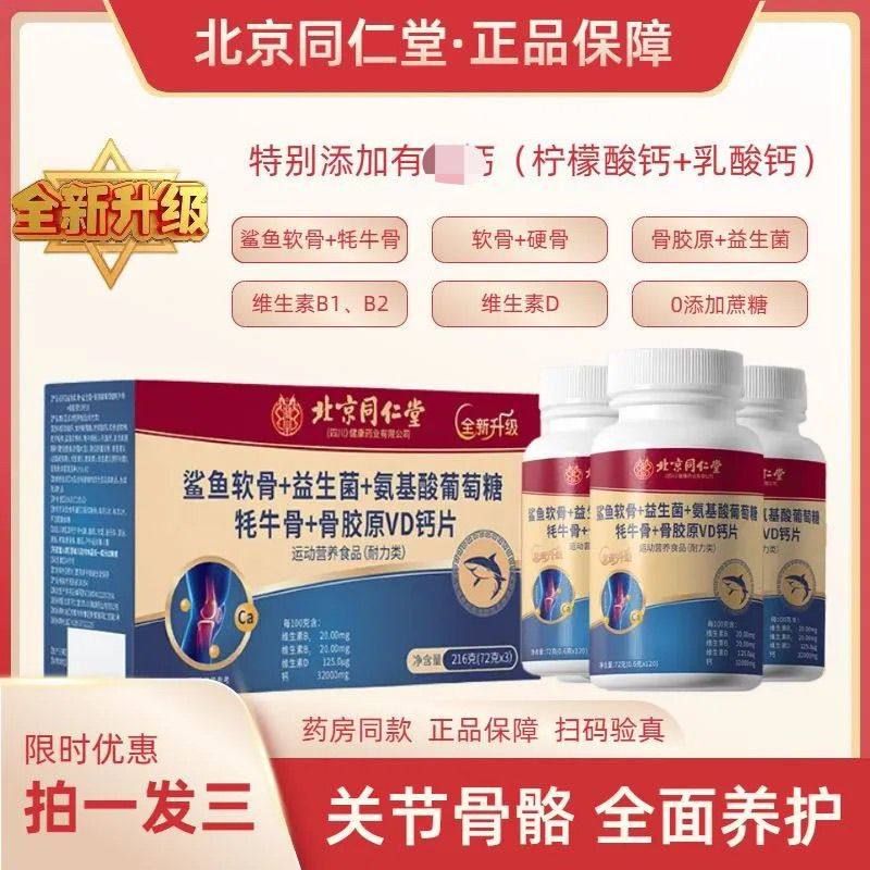 北京同仁堂鲨鱼软骨牦牛骨维生素K2+VD钙片官方旗舰店正品3瓶1盒