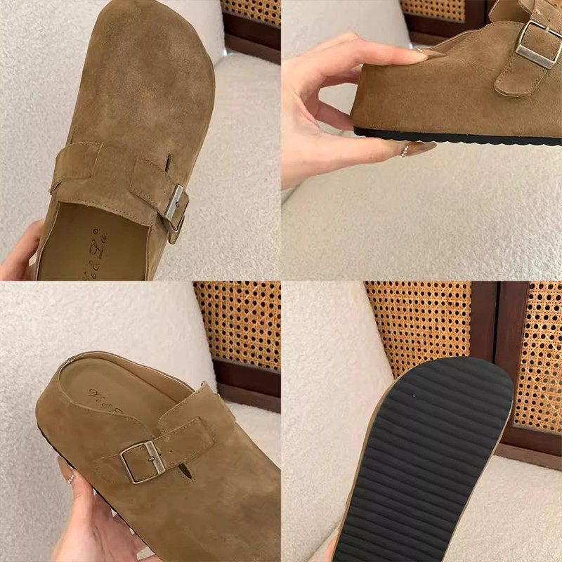 内增高6cm~厚底真皮勃肯鞋女2025秋冬新款真皮包头半拖鞋女外穿