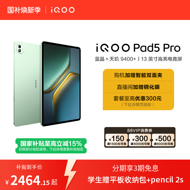 【直播间抢红包 国补】vivo iQOO Pad5 Pro平板电脑新款天玑9400+学生13英寸电竞游戏