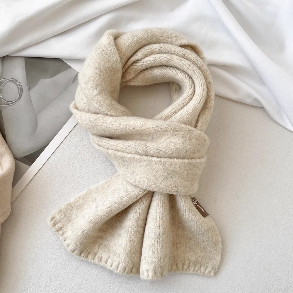 羊毛混纺针织纯色毛线情侣小围巾韩系加厚针织保暖百搭围脖女
