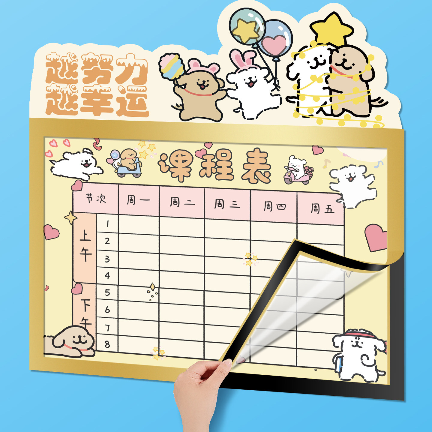 课程表磁吸家用A4不伤墙不留胶可擦写可爱卡通定制打印塑封自粘式磁性贴小学生乘法表挂图卡片皮巴拉课程表