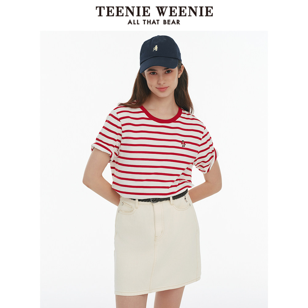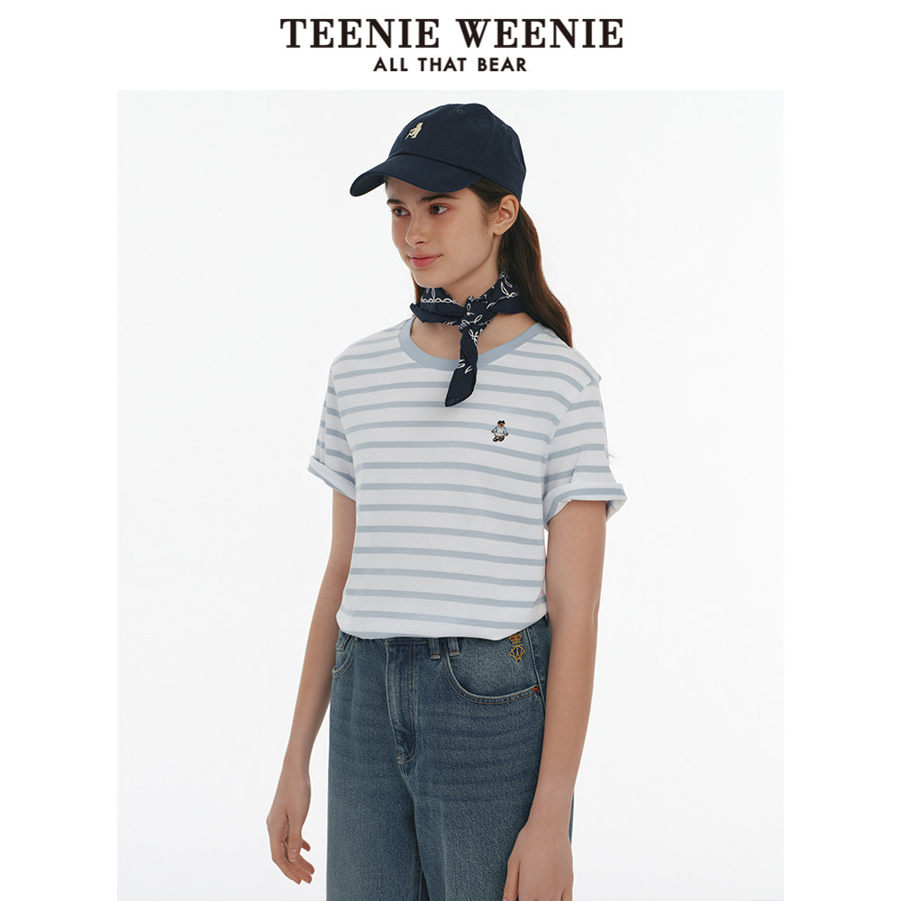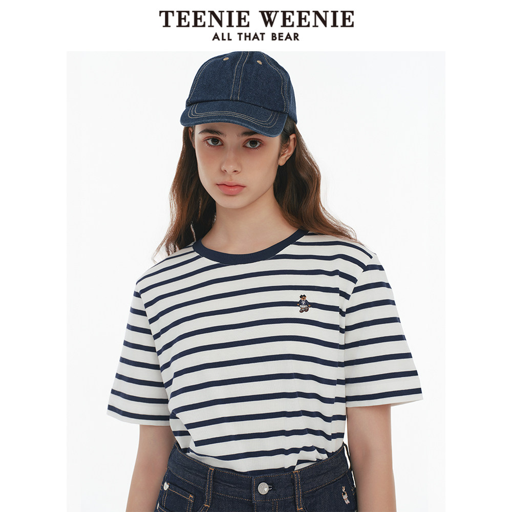 TeenieWeenie小熊奥莱条纹T恤2025夏季新款休闲时尚圆领舒适短袖