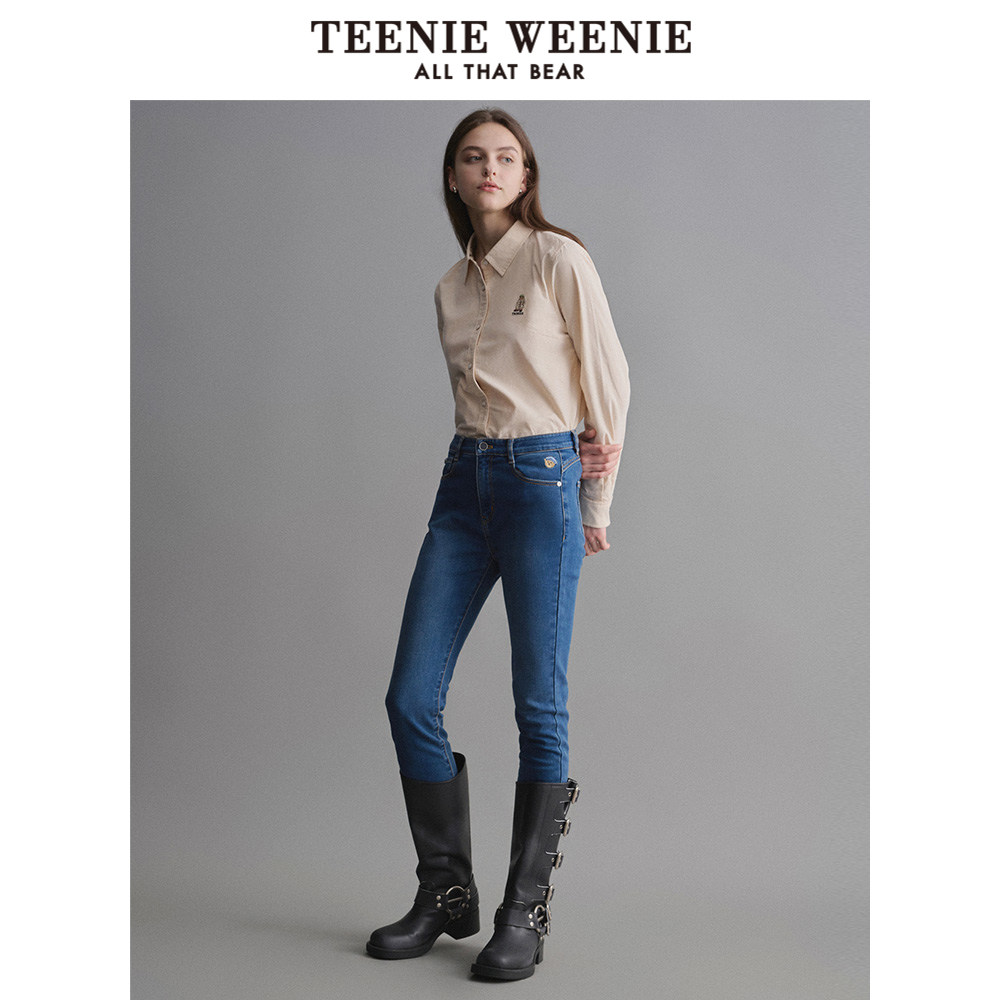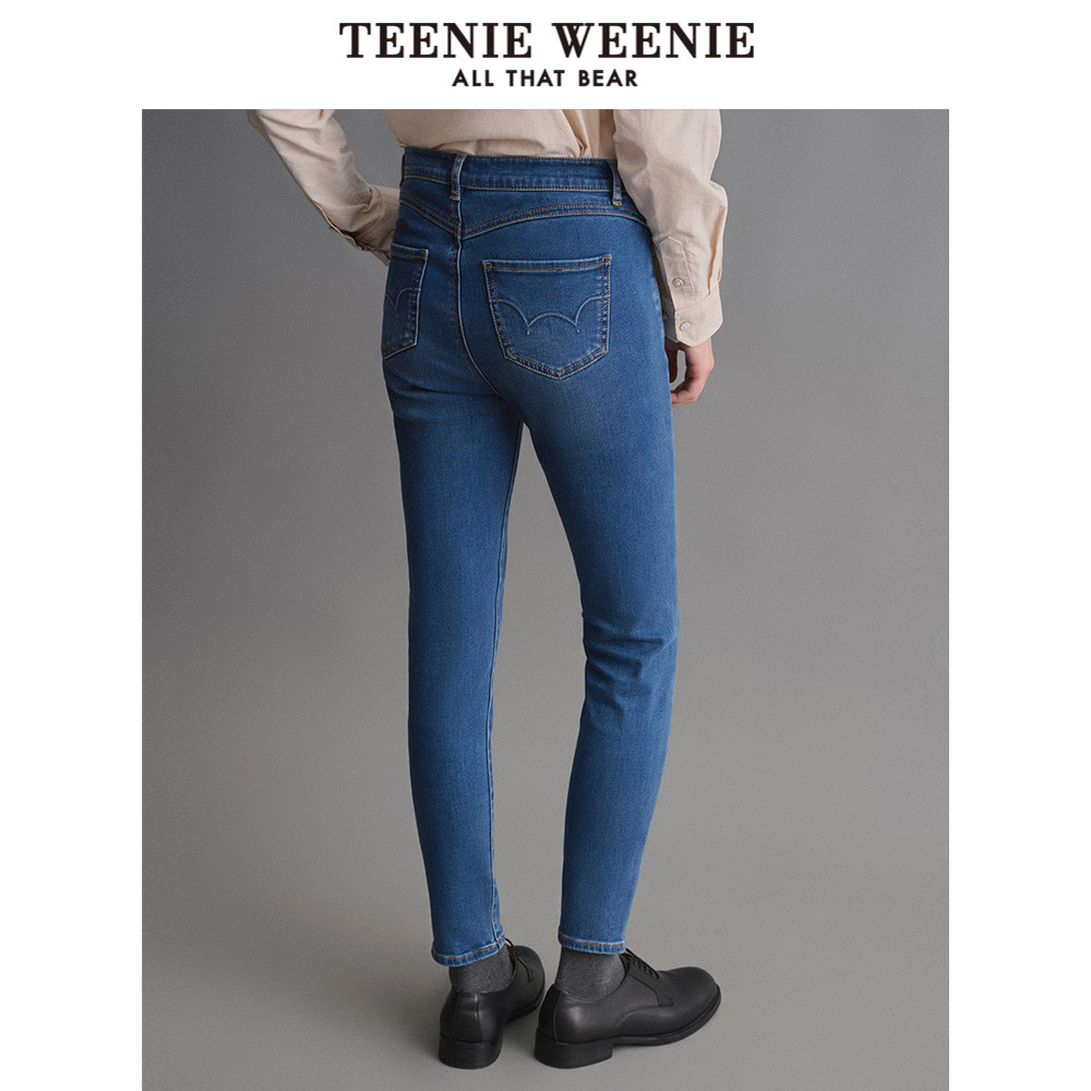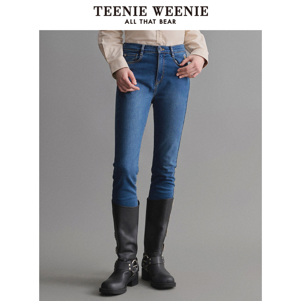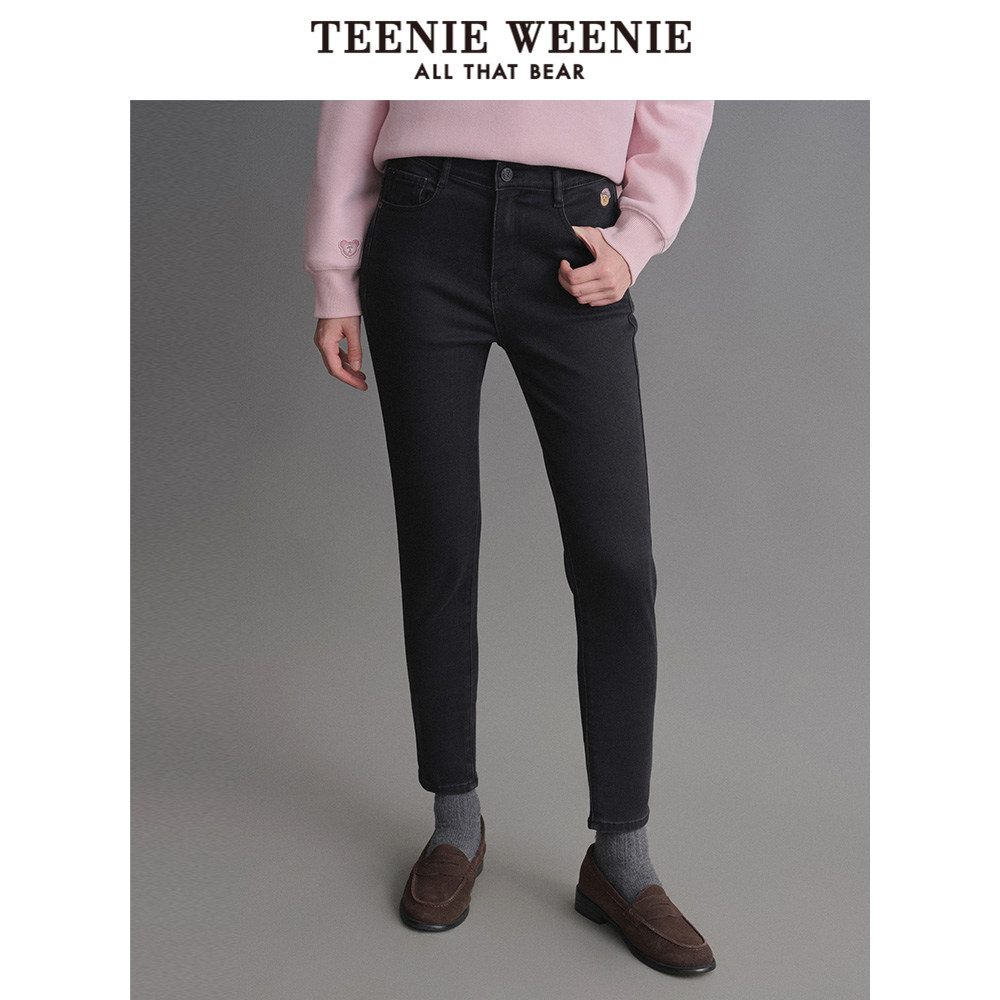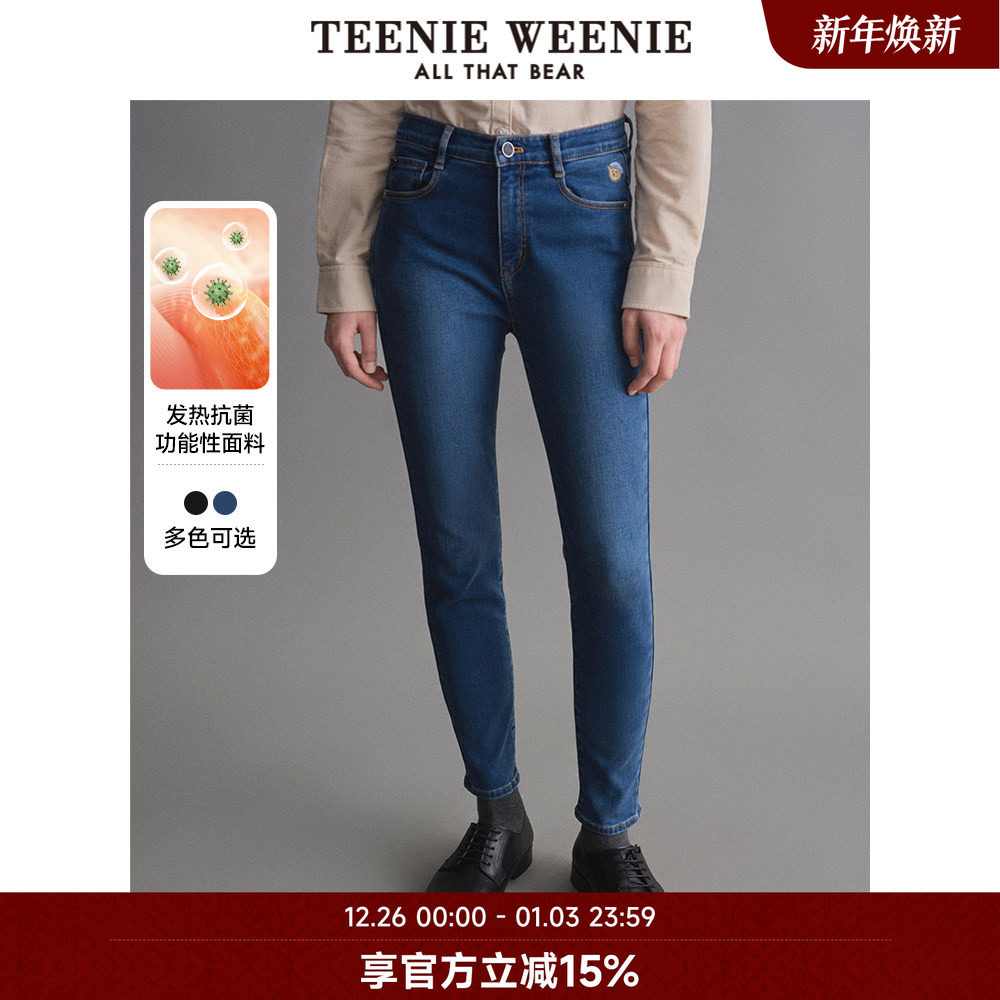 TeenieWeenie小熊奥莱秋季发热抗菌基础款修身牛仔裤长裤休闲裤女