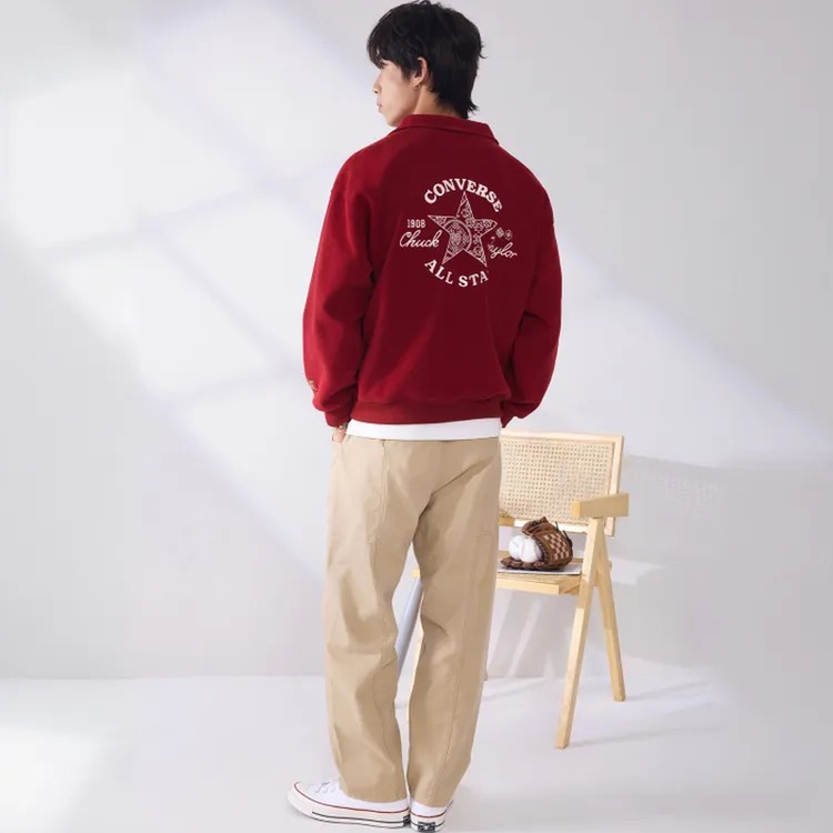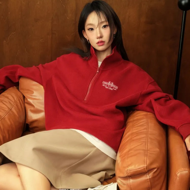 Converse匡威马年起飞系列新年款男女刺绣高领毛衣红色UCJ392-B35