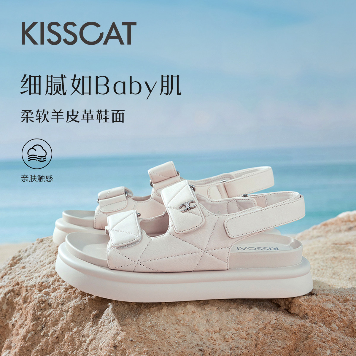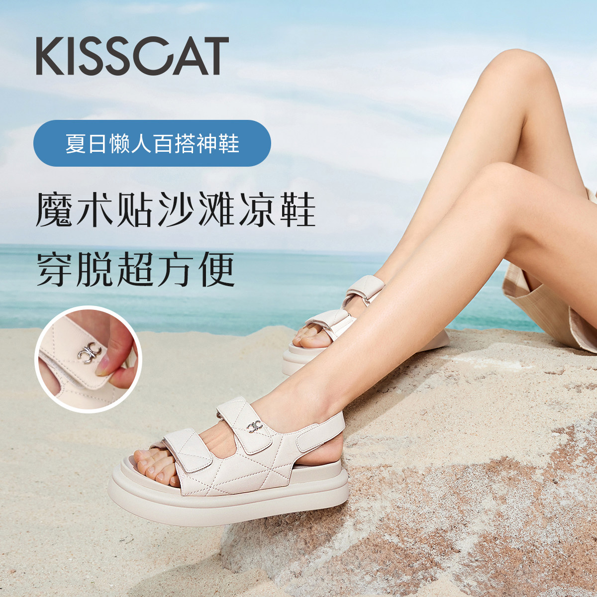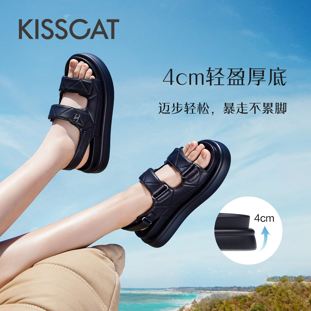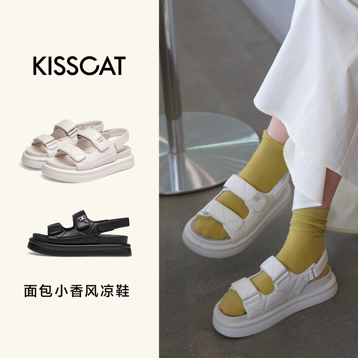 [美洋同款]接吻猫[面包小香风沙滩凉鞋]夏新魔术贴厚底运动凉鞋