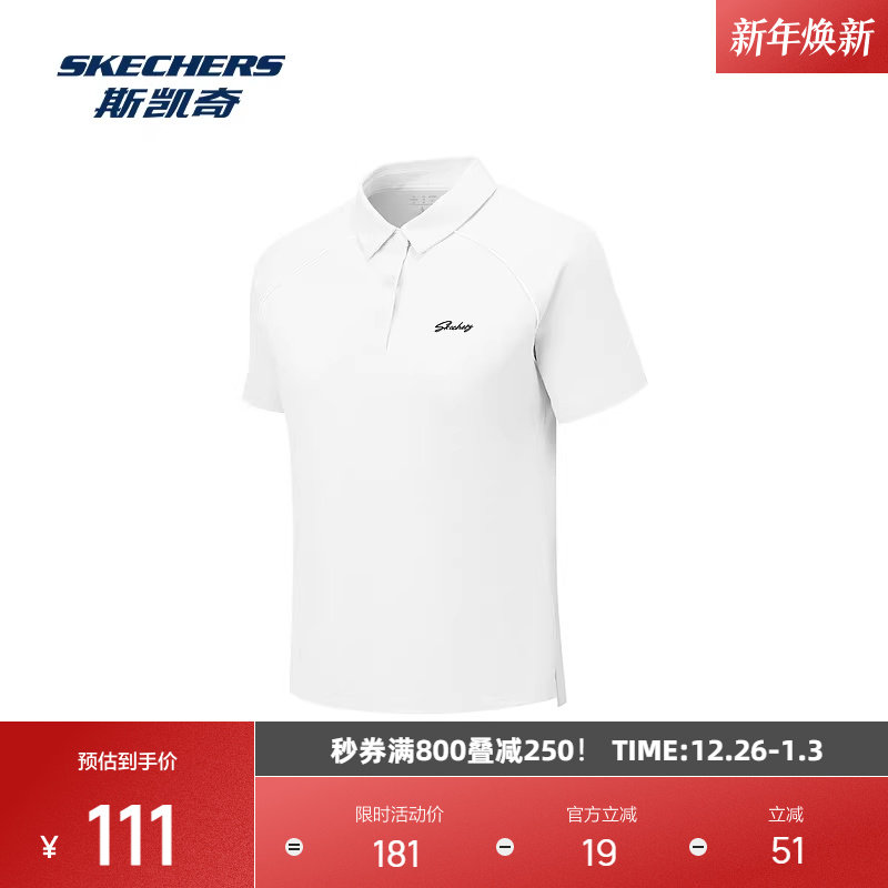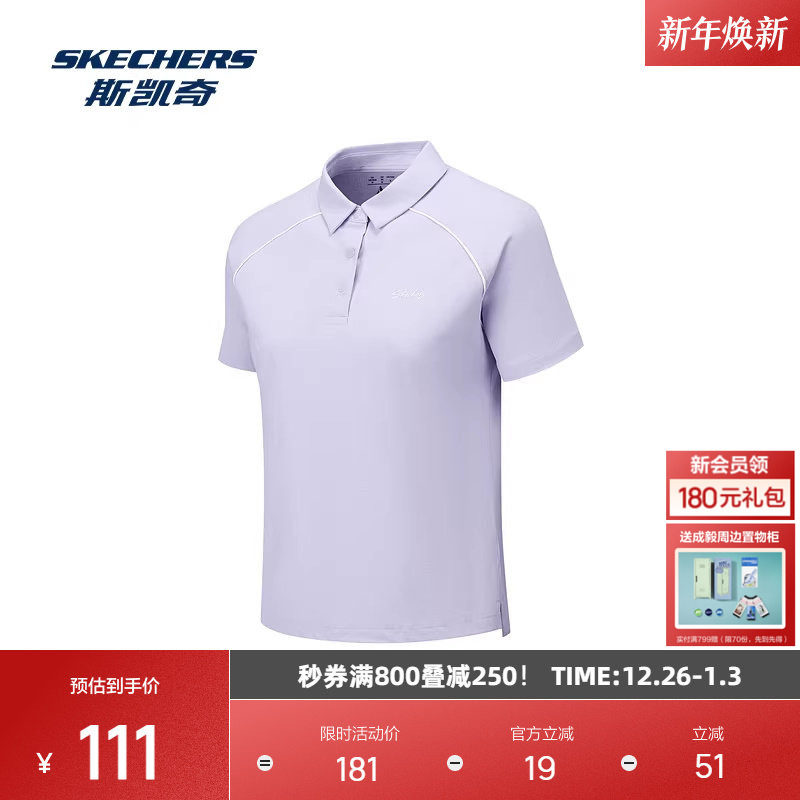 斯凯奇女装POLO衫修身短袖吸湿速干商务通勤简约都市运动风
