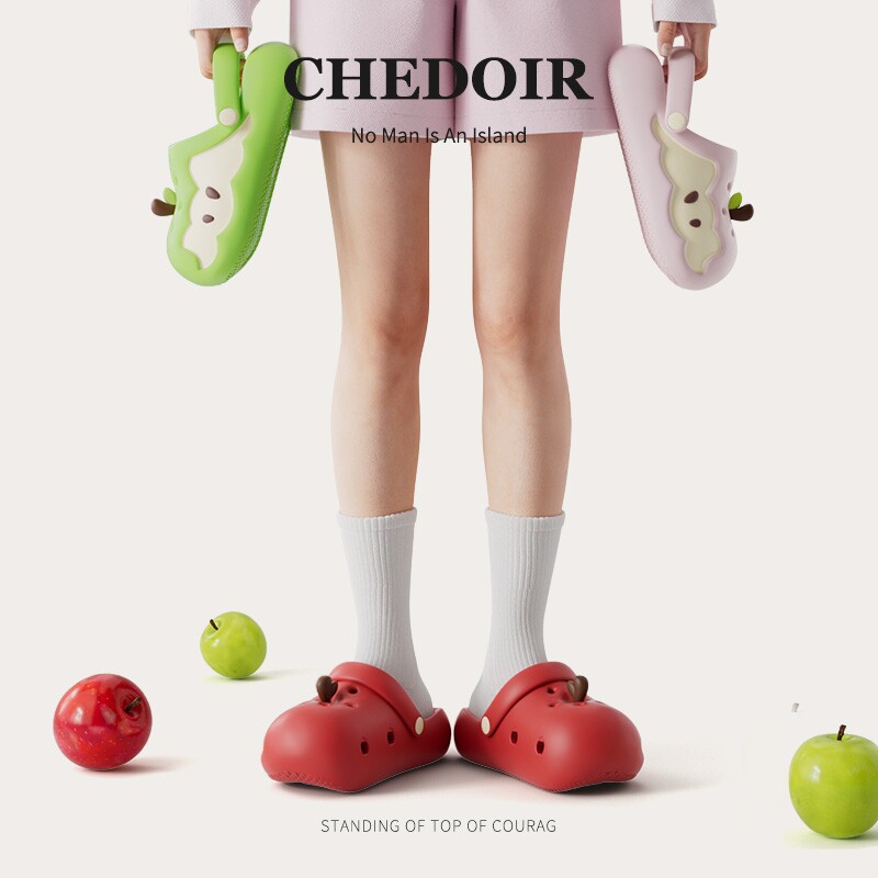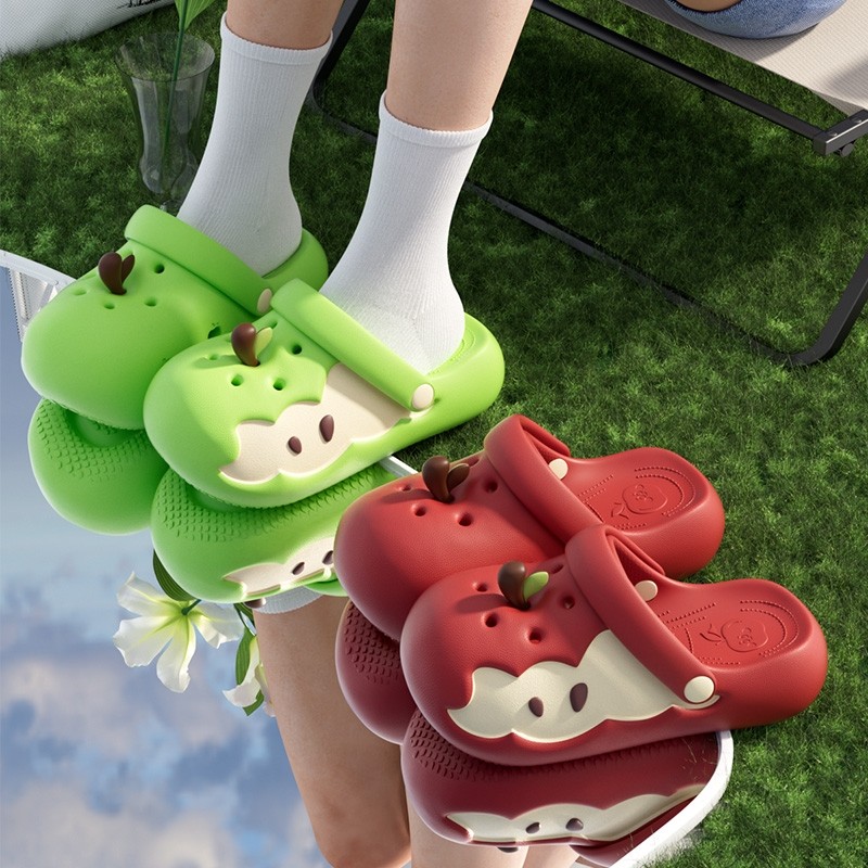 CHEDOIR苹果洞洞鞋女童包头夏季外穿沙滩凉鞋儿童亲子款拖鞋防滑