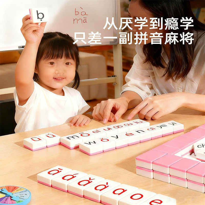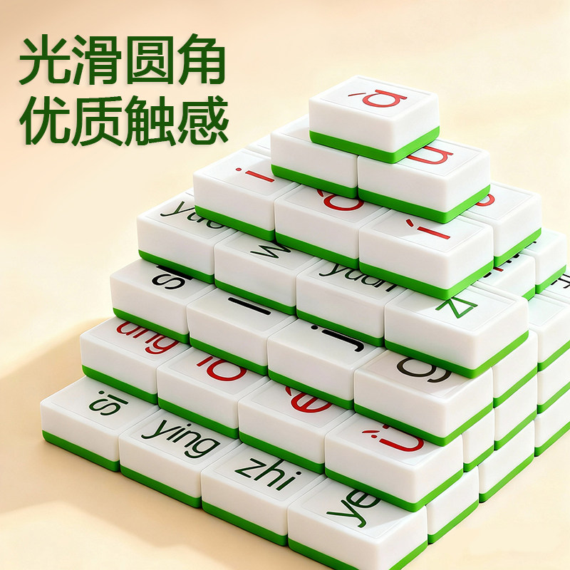 拼音麻将牌儿童汉语字母玩具益智桌游认读拼读亲子互动单词骰子