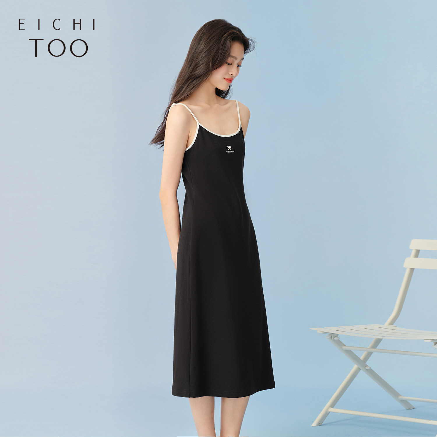 爱居兔夏季新款简约大气时尚小黑裙吊带连衣裙
