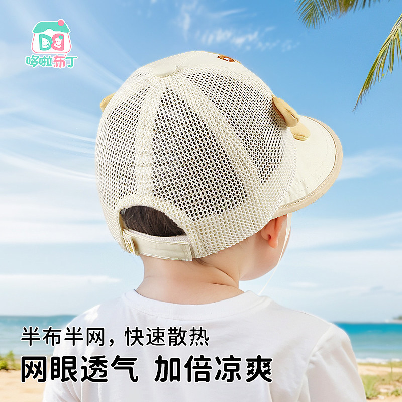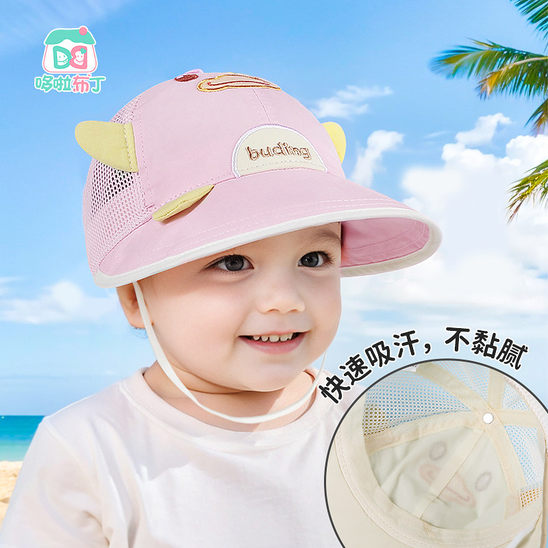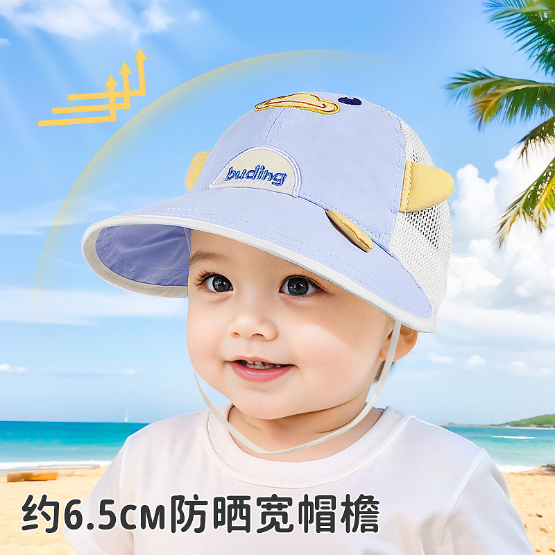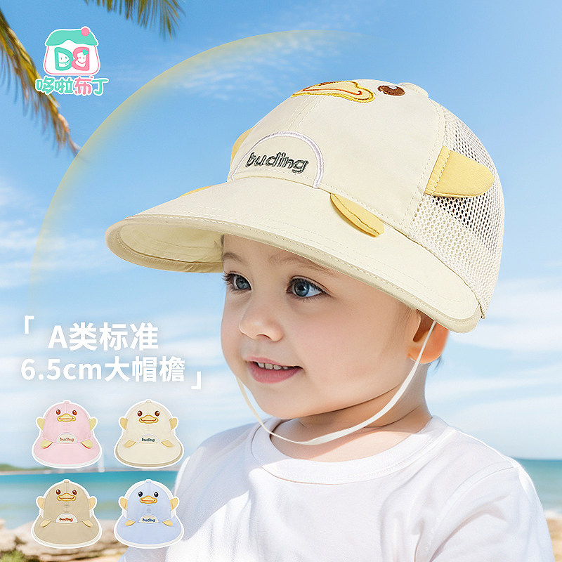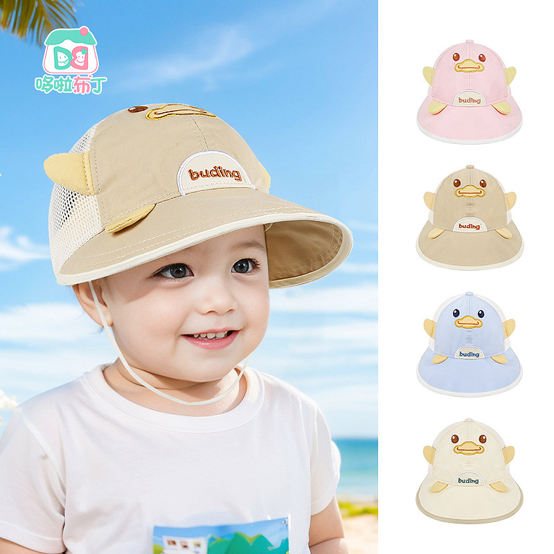 哆啦布丁夏季儿童户外网眼透气立体鸭子沙滩帽男女宝宝大檐渔夫帽