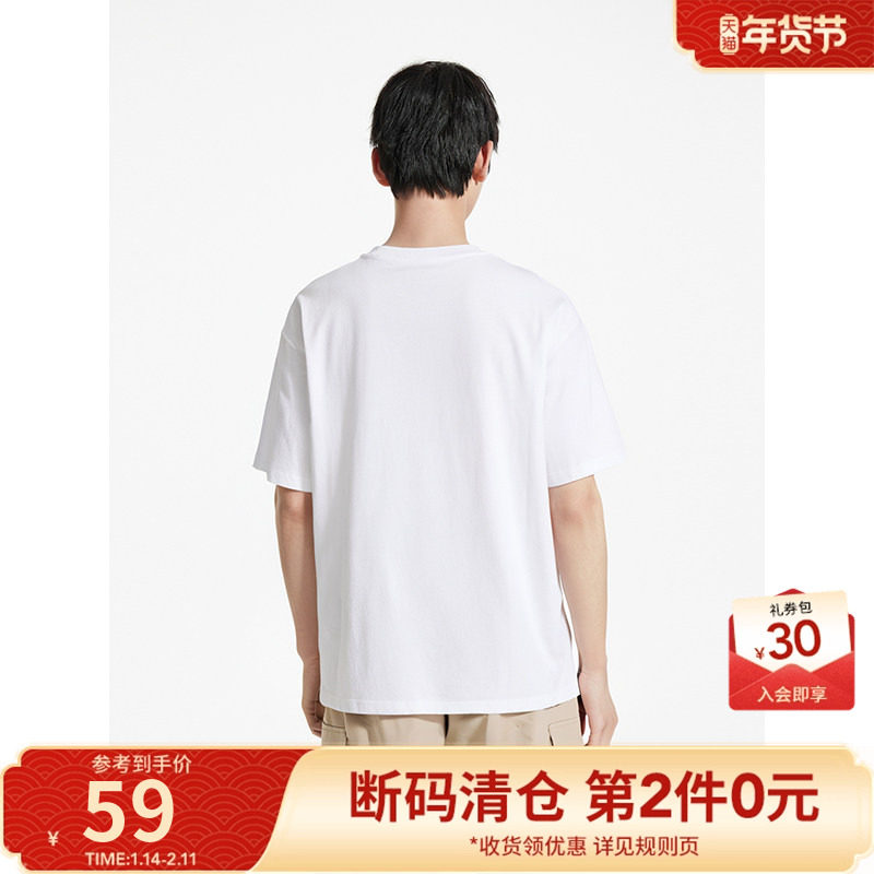 森马短袖T恤男纯棉打底衫修身长袖25夏季新款纯色内搭上衣简约白