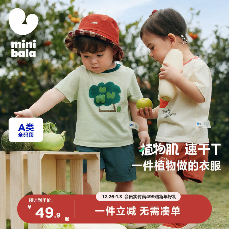 迷你巴拉巴拉男女童短袖T恤防蚊裤儿童裤子宝宝婴儿上衣速干t长裤