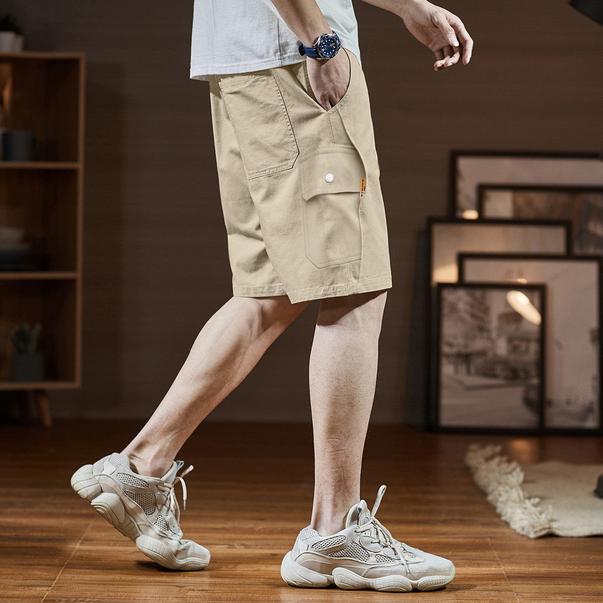唐狮春夏季新款休闲裤男工装风短裤宽松五分裤抽绳休闲短裤潮流