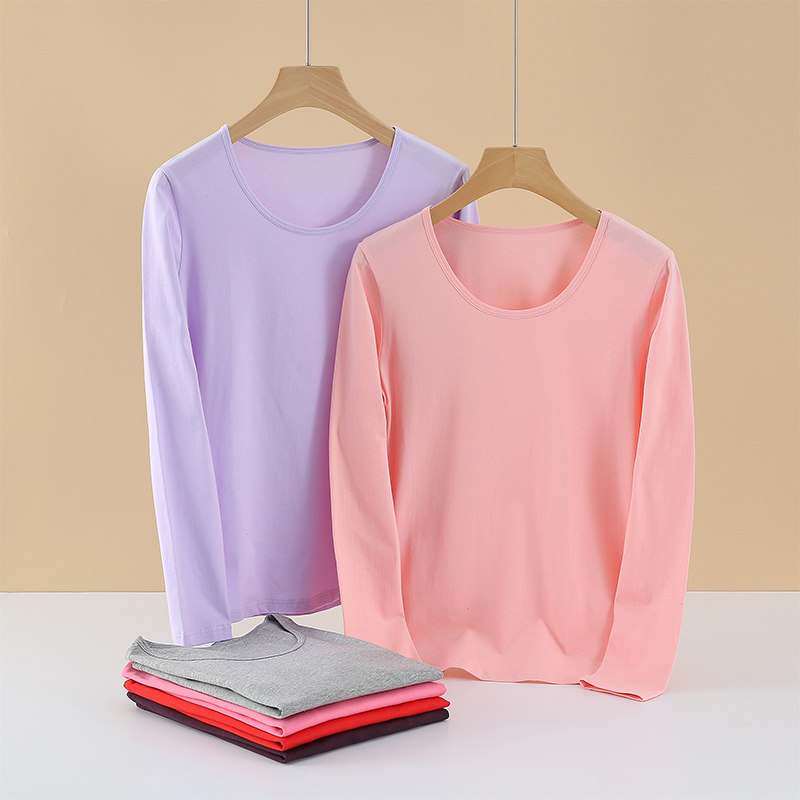 恒源祥款纯棉抗菌秋衣女薄款贴身打底内穿长袖上衣秋冬棉毛衫线衣