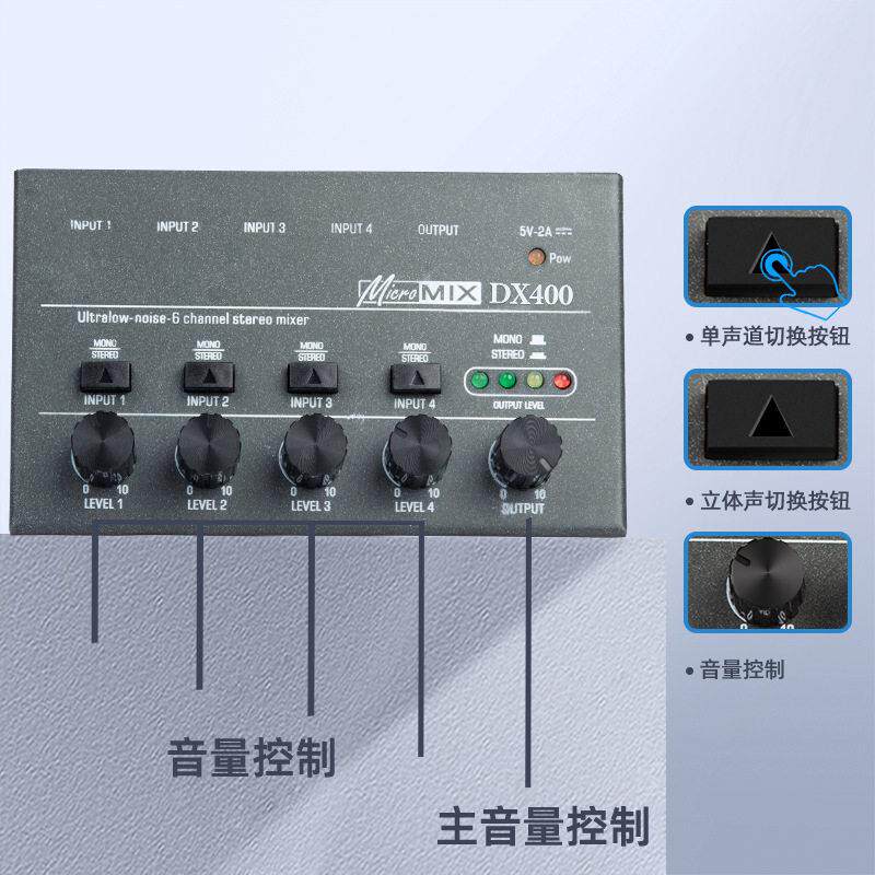 6.5接口混音器四进一出 6路音频声音合成混响调音台前级效果器