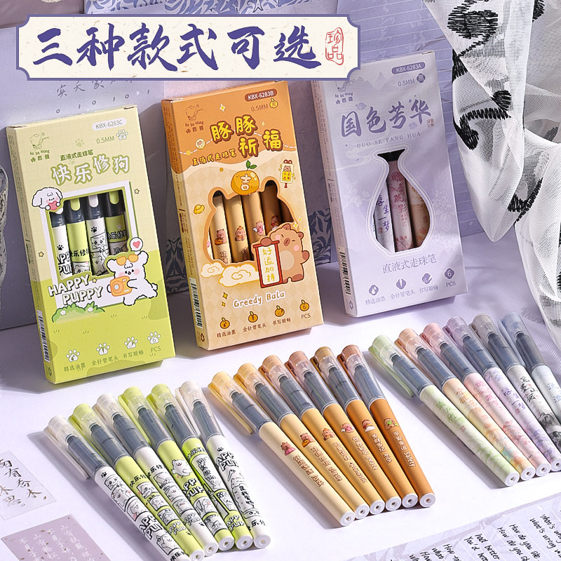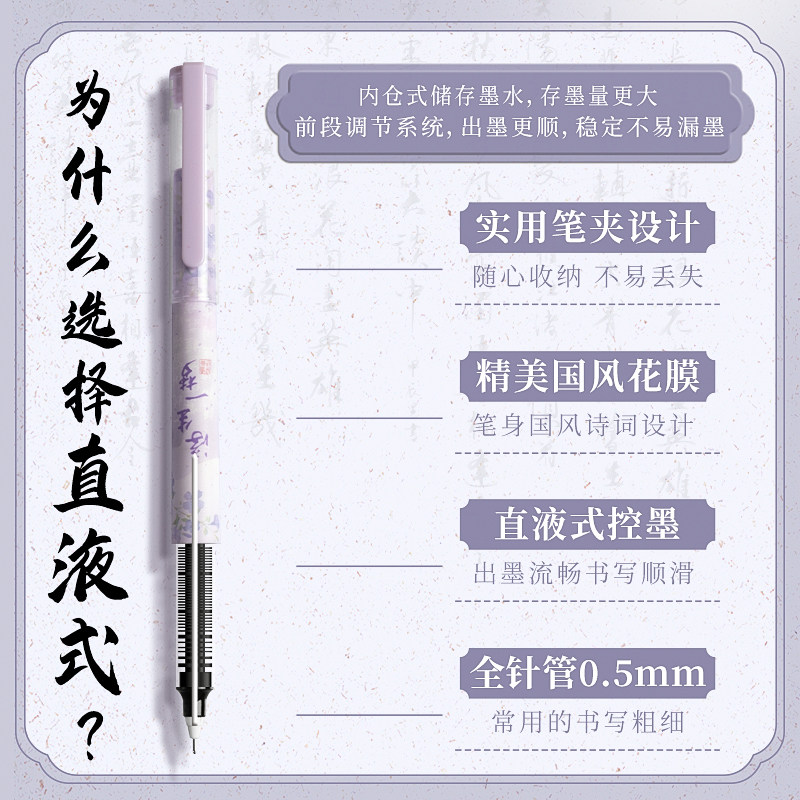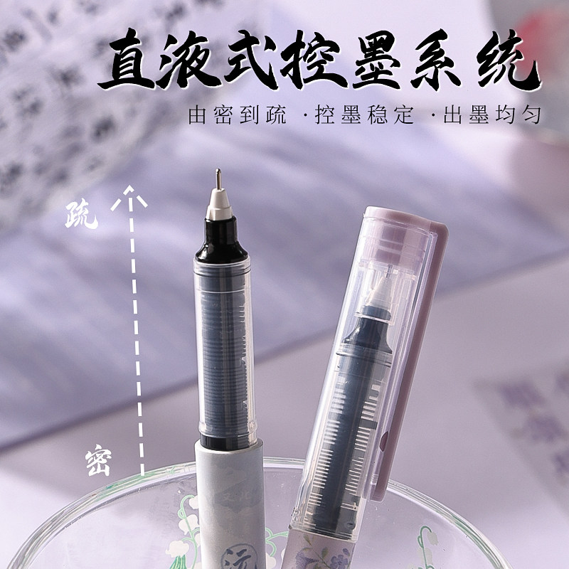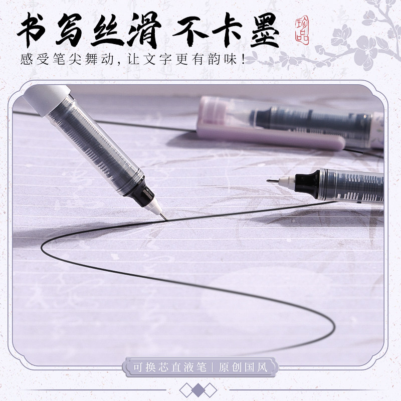 直液式走珠笔国风签字笔黑笔古风防水速干针管笔头黑墨直液笔替芯学生考试用高颜值碳素圆珠笔顺滑可换替换