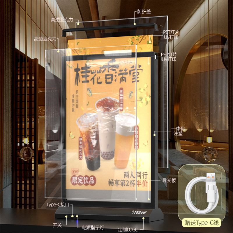 sviao速销宝 发光菜单展示牌奶茶店亚克力台卡菜谱价目表灯箱摆台菜品酒水单台牌高档立牌a4菜单设计制作桌牌