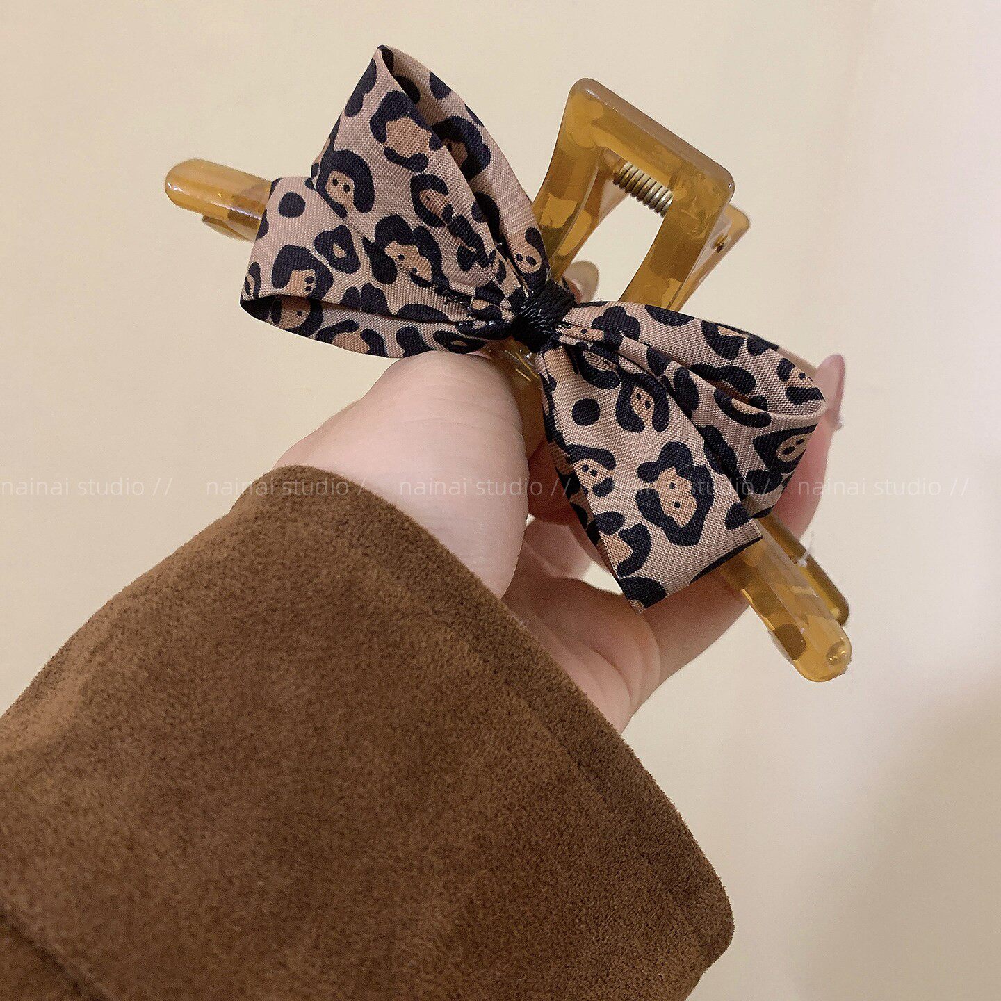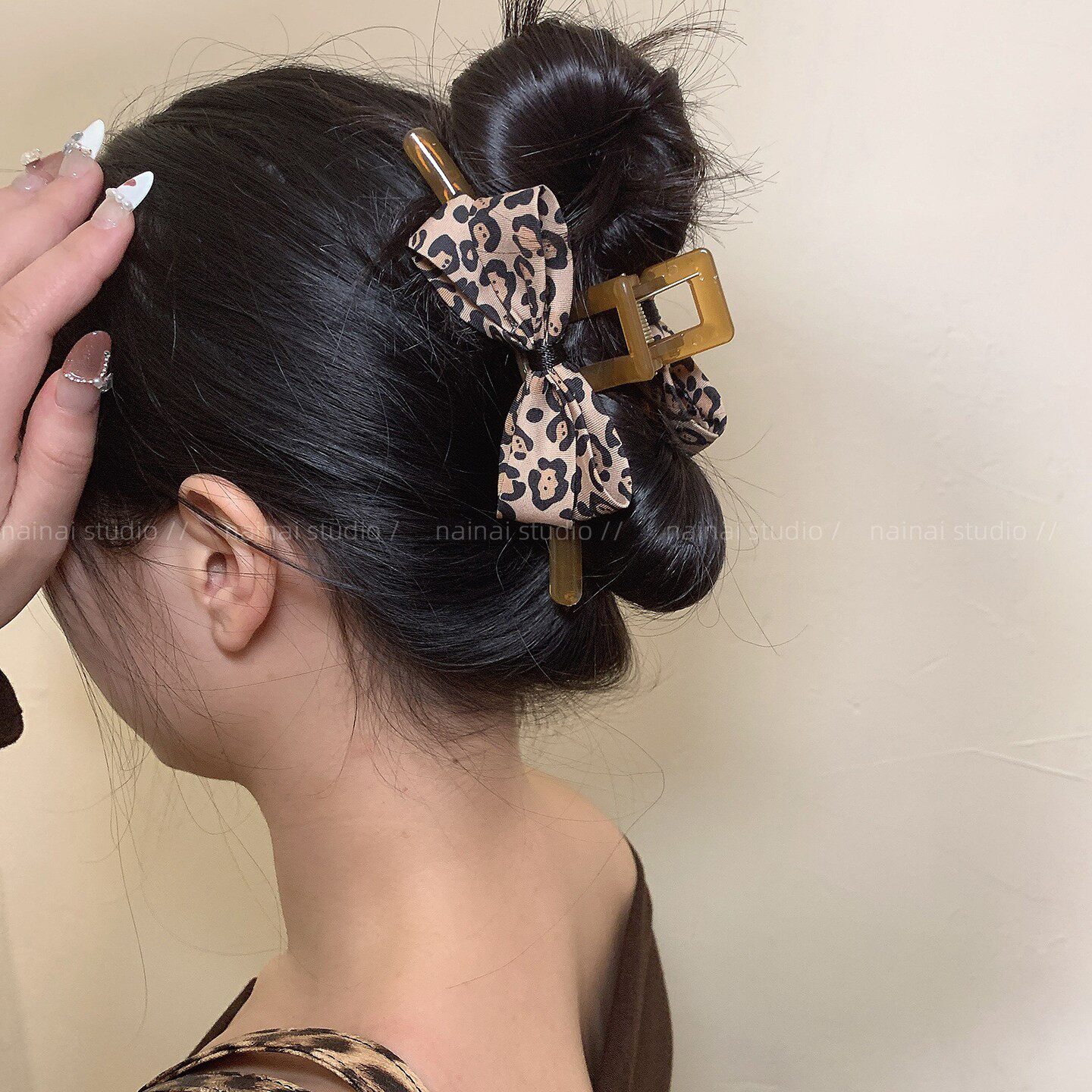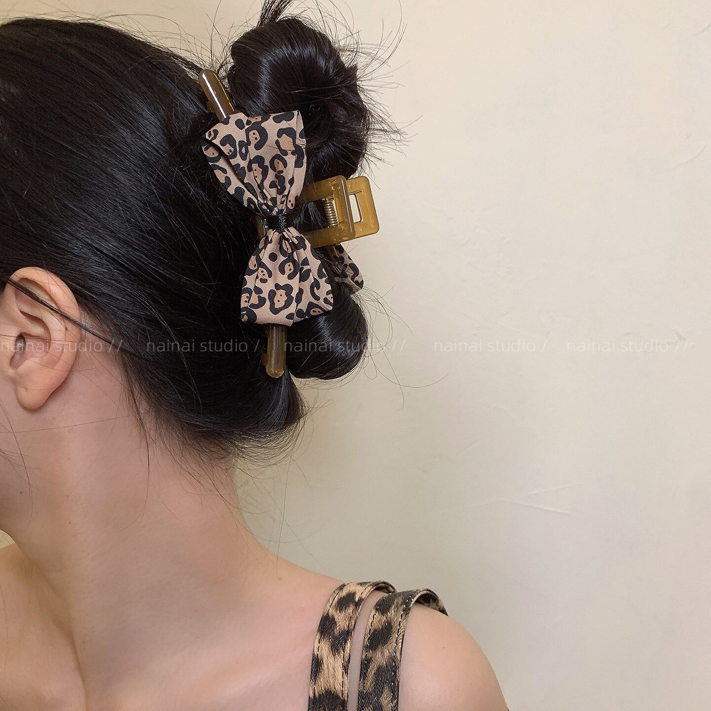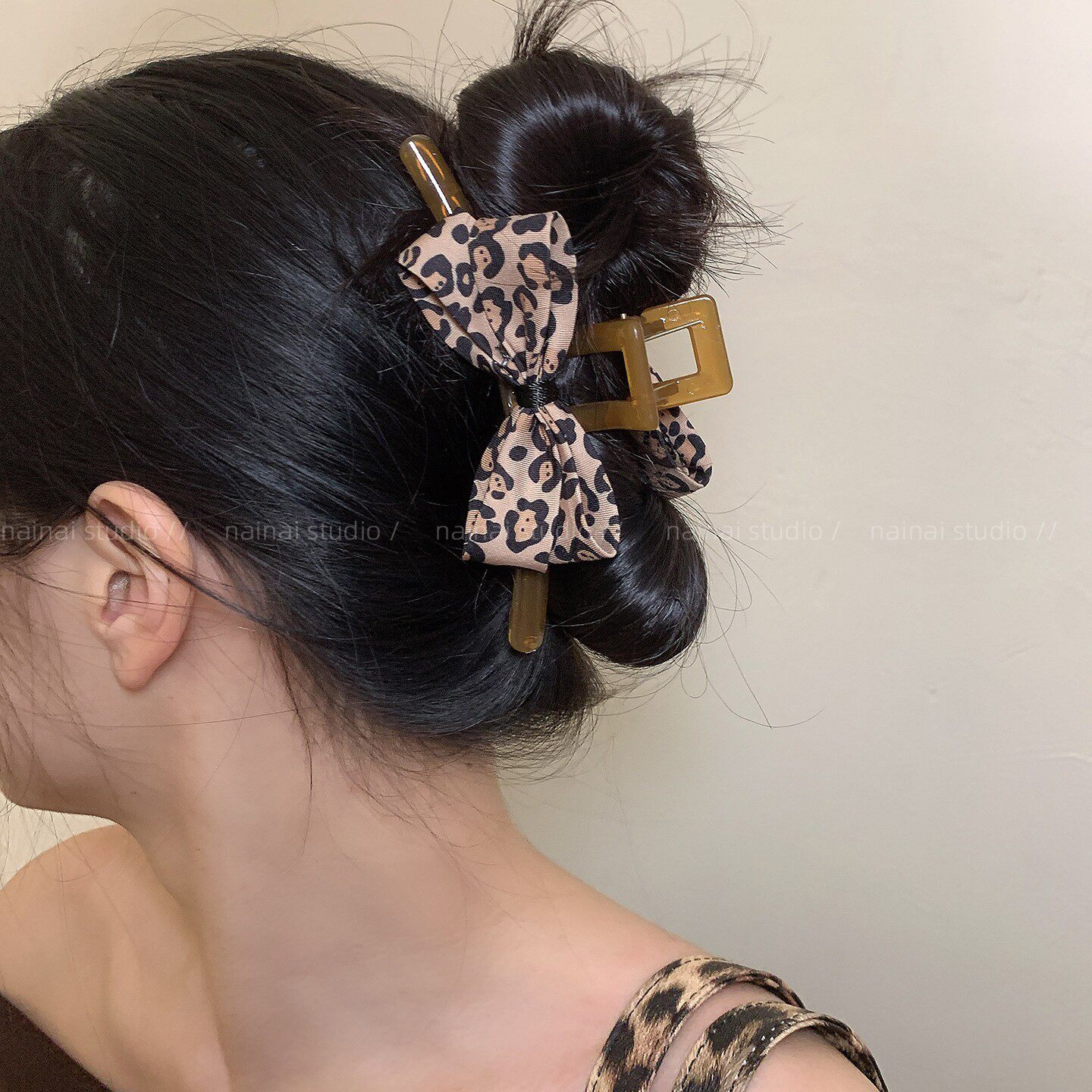 豹纹蝴蝶结抓夹~蝴蝶结甜酷辣妹小众设计后脑勺盘发鲨鱼夹发抓女A