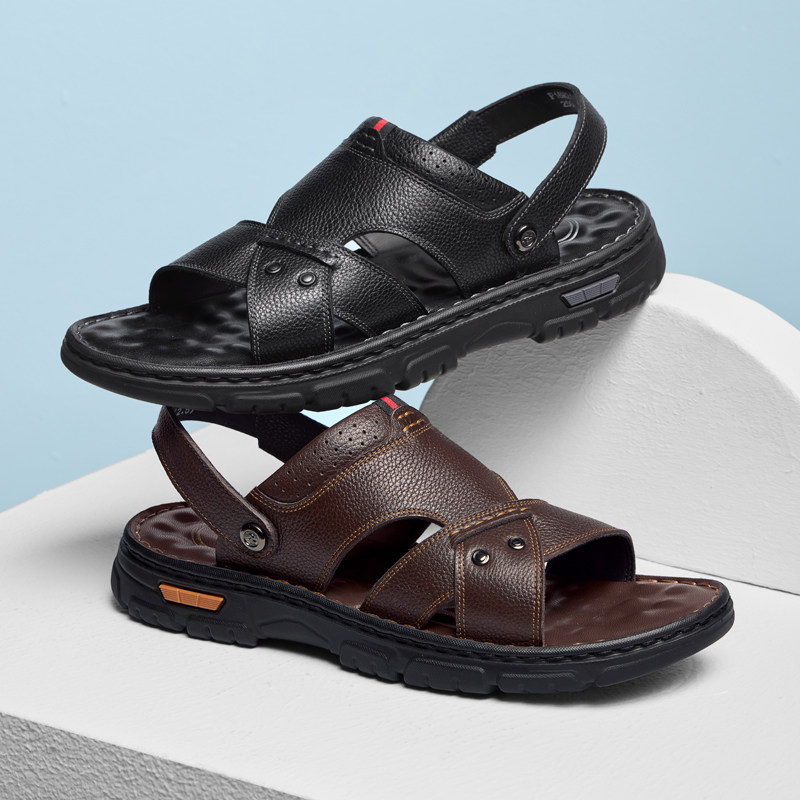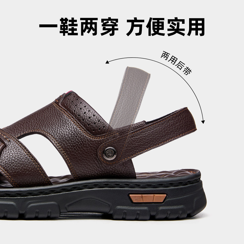 啄木鸟沙滩鞋男士头层牛皮牛筋底凉鞋真皮休闲防滑两用爸爸凉拖鞋