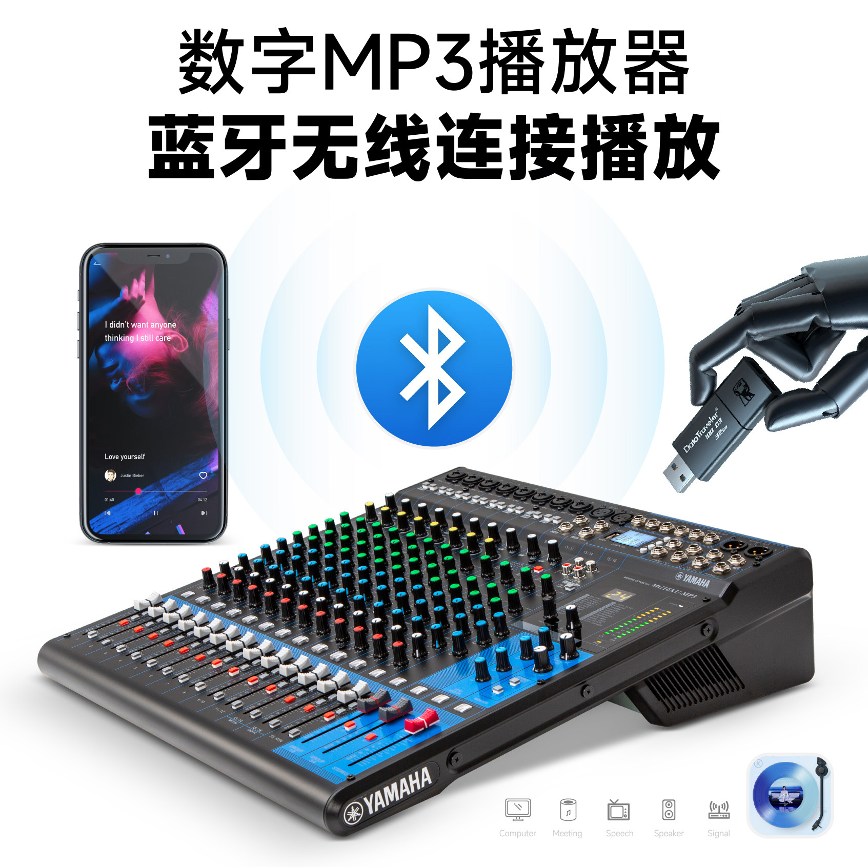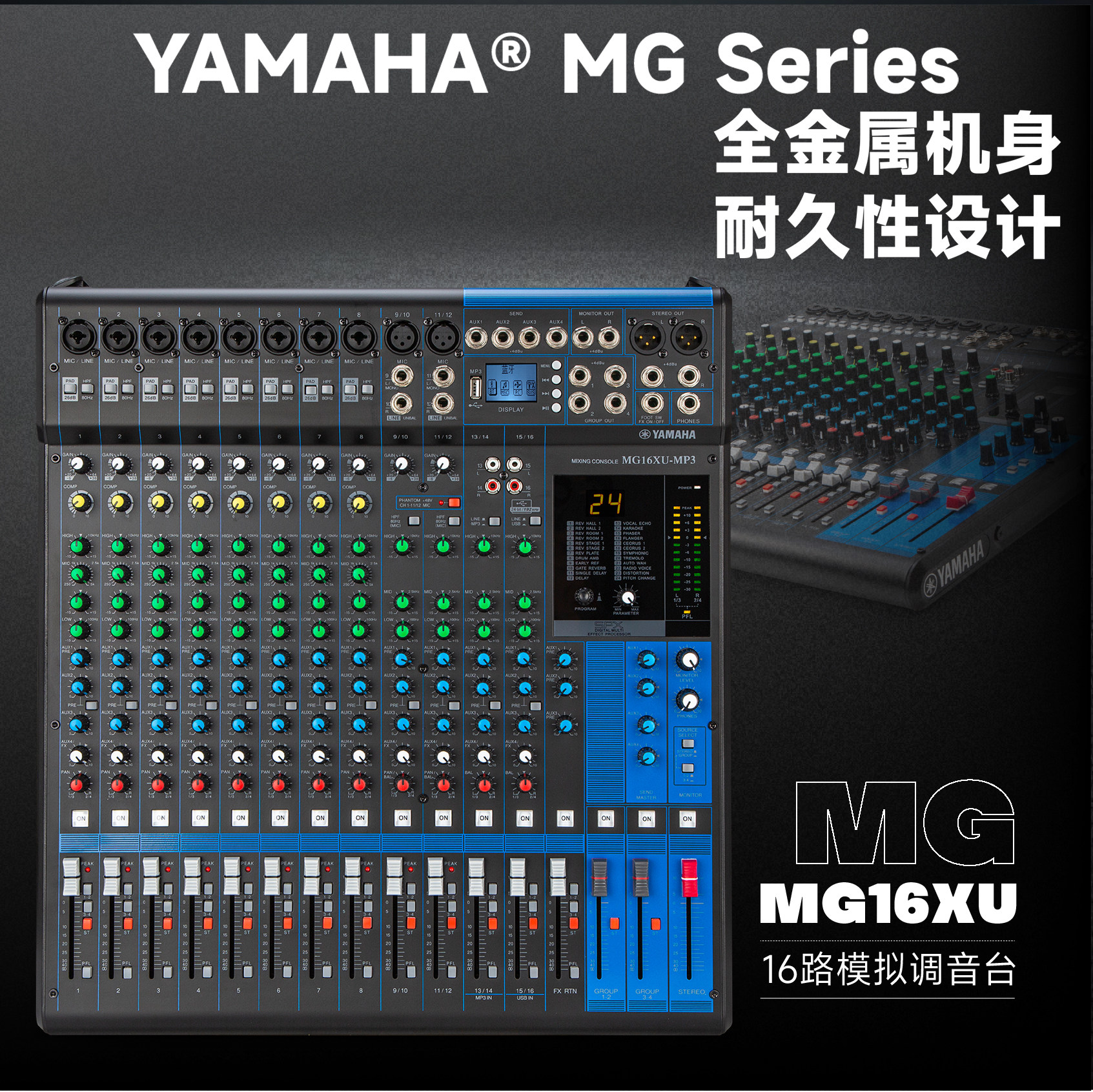 Yamaha/雅马哈MG16XU专业调音台舞台演出婚庆带效果USB蓝牙防啸叫