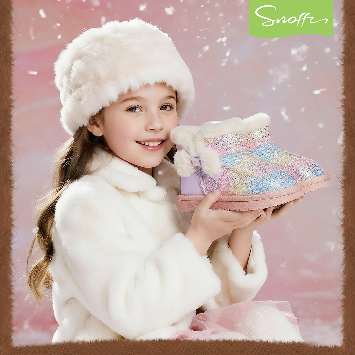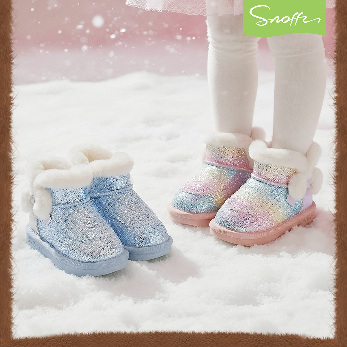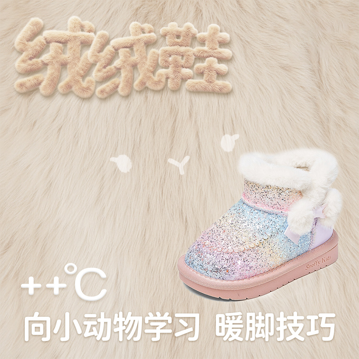 斯纳菲女童雪地靴子秋冬季新款小女孩公主鞋加绒保暖宝宝水晶短靴
