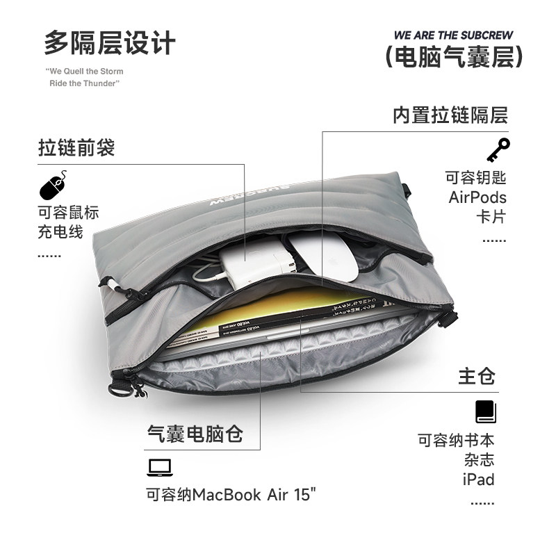Subcrew软fufu感充棉苹果笔记本电脑包14寸男女通用可单肩手提斜挎包