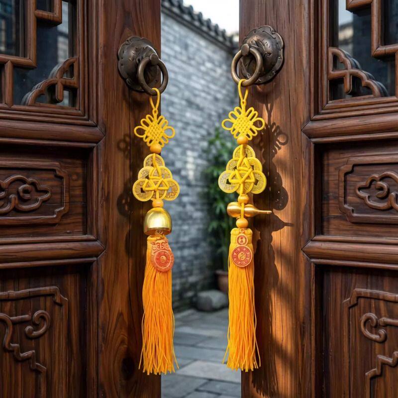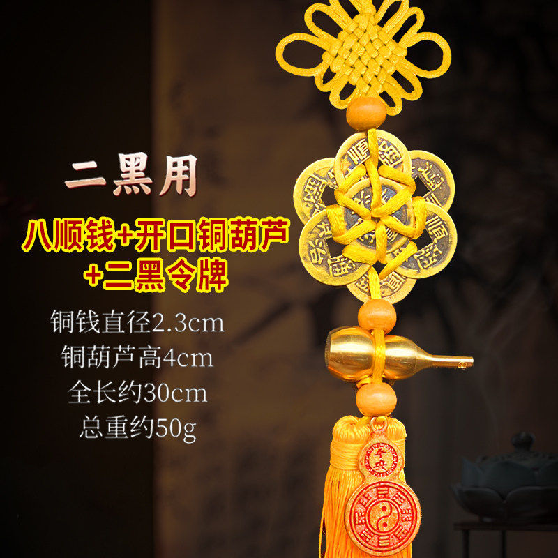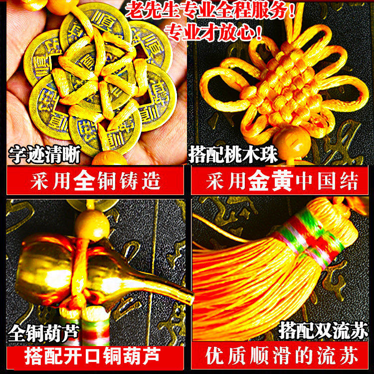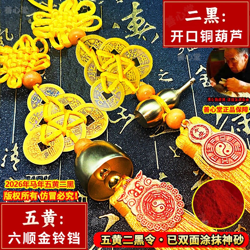 2026年五黄二黑黄绳六帝钱纯铜葫芦铃铛六八顺钱门对门五帝钱挂件