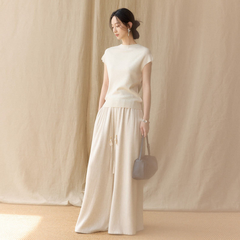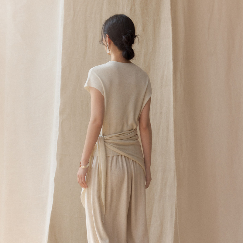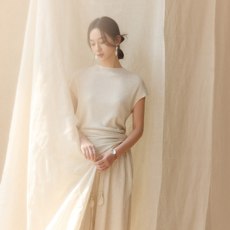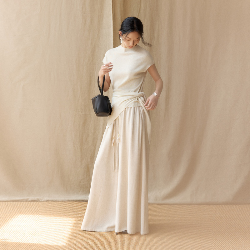 AIRIQI商场同款26夏新款简约圆领短袖修身系带针织衫女AH62MS113