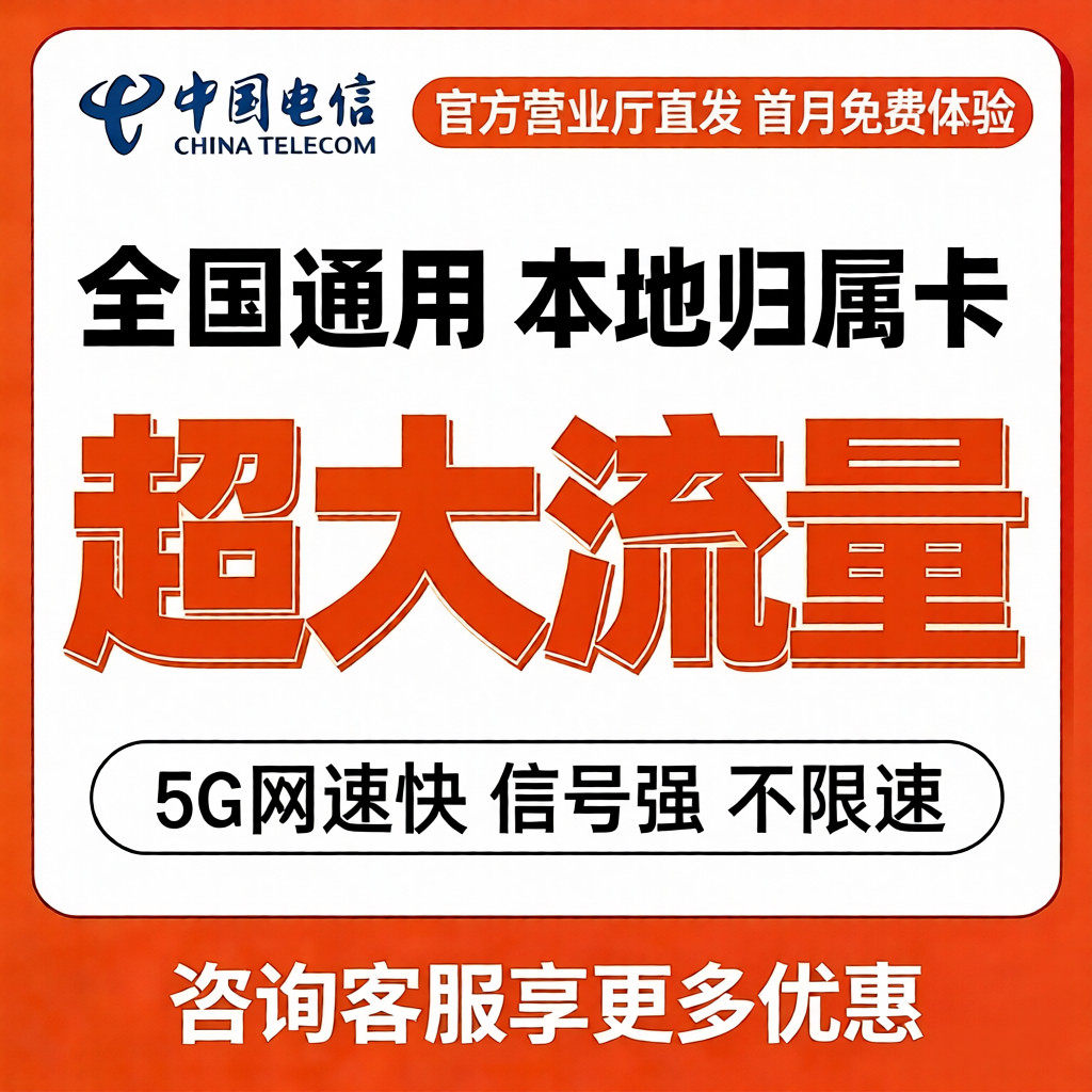 中国电信流量卡纯流量上网卡无线限5g全国通用大流量手机卡电话卡
