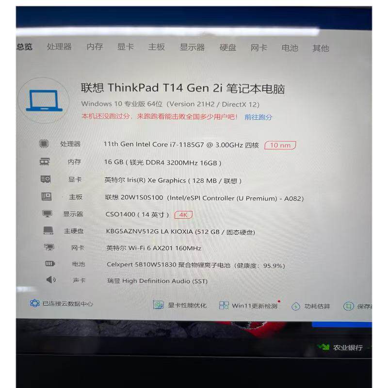 联想ThinkPad T14 T14s i7-1185G7 32G 轻薄商务办公笔记本电脑4k