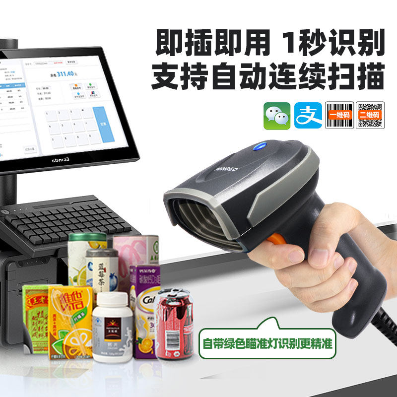 MINDEO民德MD6100一维码激光扫描枪商超便利店珠宝快递条码扫码枪