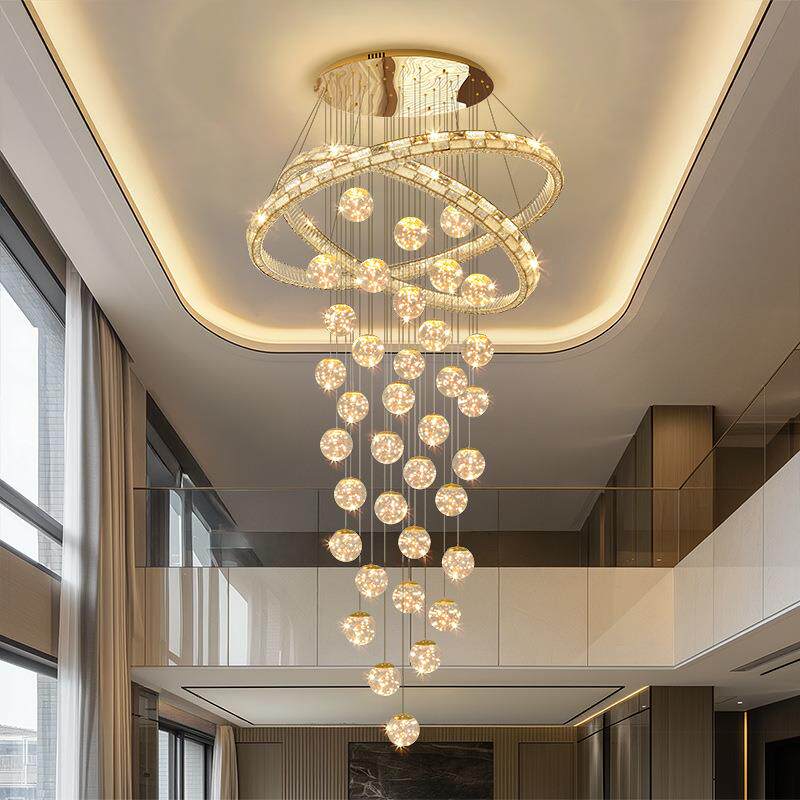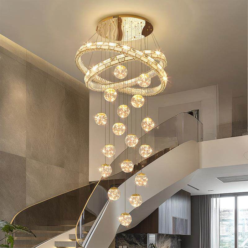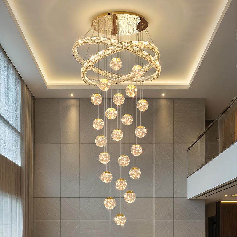 轻奢别墅水晶楼梯吊灯现代简约2025新款复式楼loft公寓挑高客厅灯