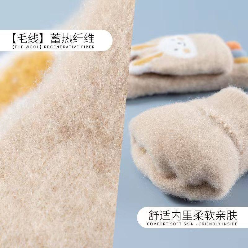 儿童手套女孩秋冬款毛绒保暖加厚防冻男女童半指翻盖五指学生手套