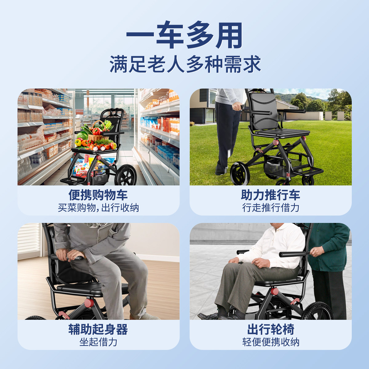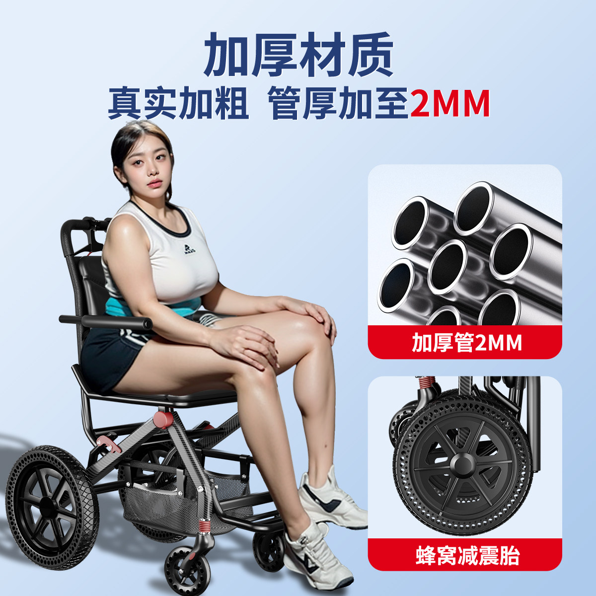 轮椅轻便小型可折叠老年人专用便携式旅游简易手推车代步车手动