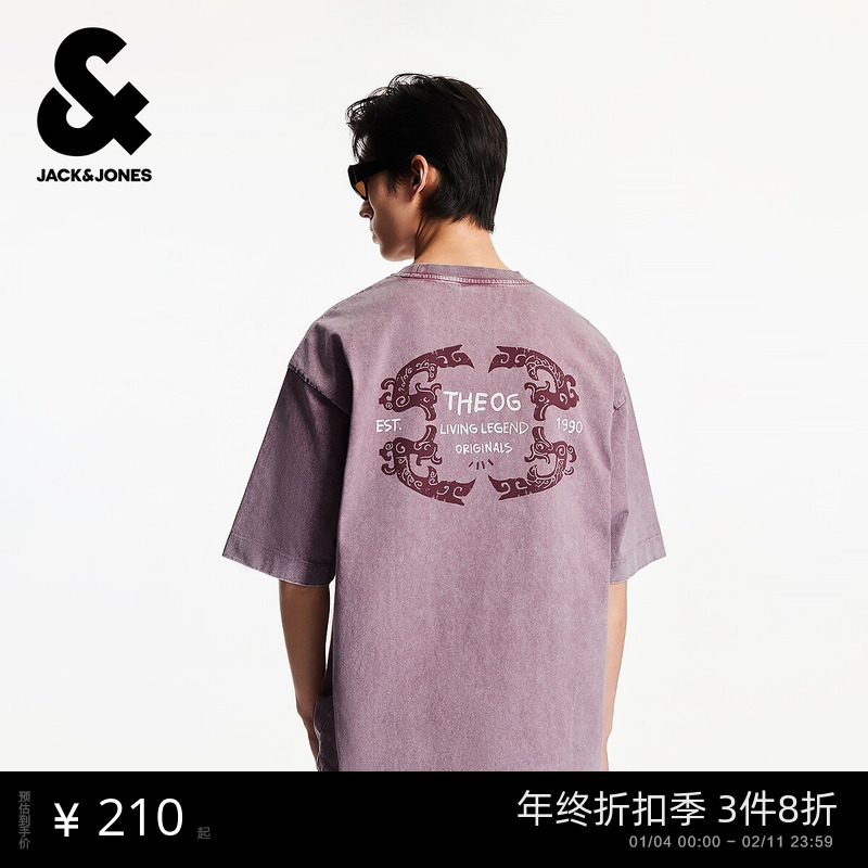 杰克琼斯男装秋季新款短袖T恤百搭刺绣舒适纯棉宽松休闲圆领上衣