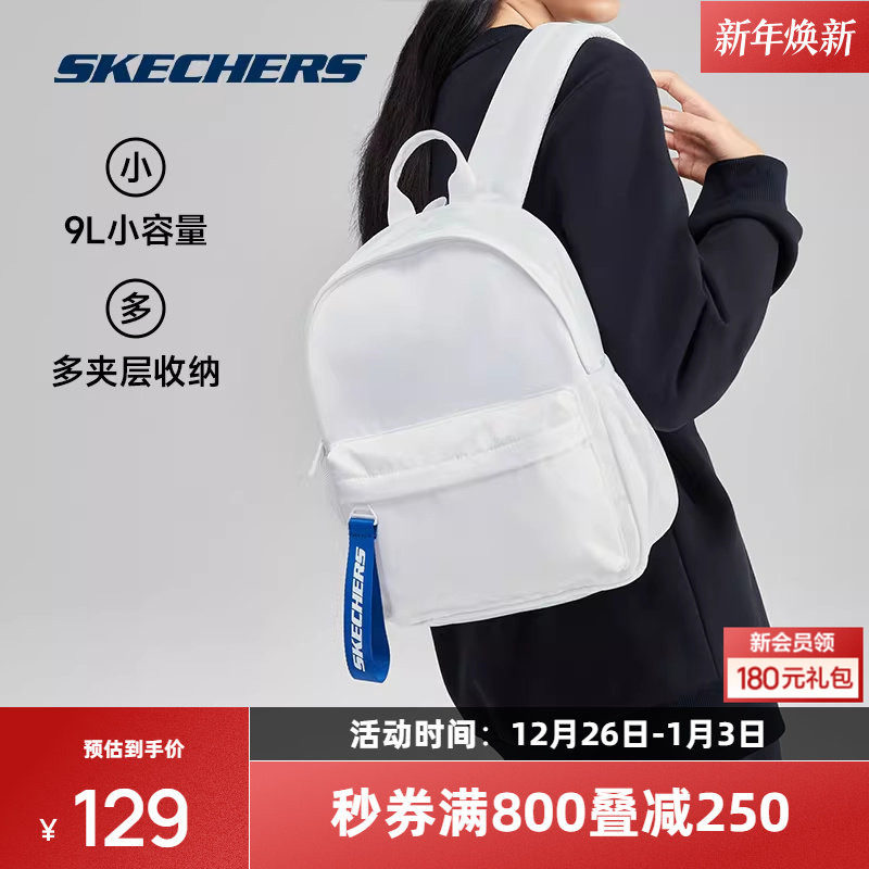 斯凯奇男女同款小型双肩背包休闲通勤逛街旅行背包清新时尚个性