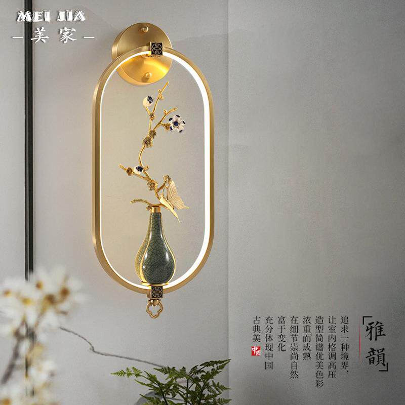 中式客厅大气全铜壁灯复式楼大厅背景墙楼梯灯别墅床头过道鹿头灯