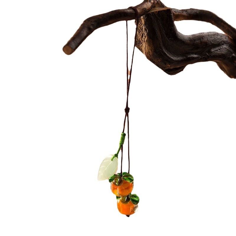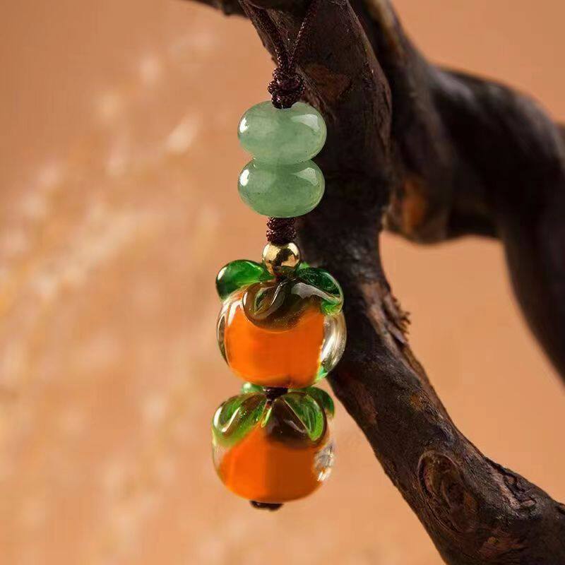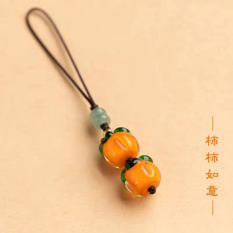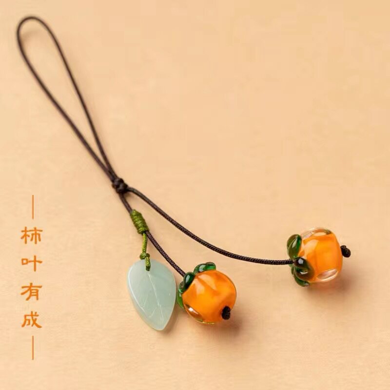 事事如意琉璃柿子手机链挂绳复古中国风柿叶有成钥匙挂件吊坠饰品